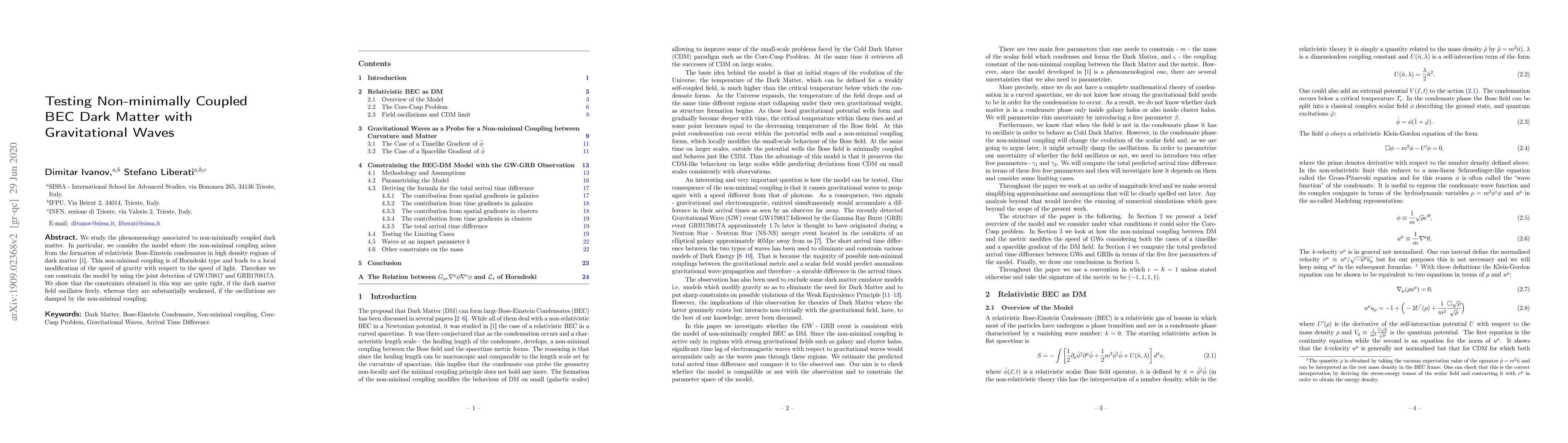 This paper investigates non-minimally coupled dark matter in the form of relativistic Bose-Einstein condensates, focusing on Horndeski-type modifications to gravitational speed. Constraints on the model are derived from the joint detection of GW170817 and GRB170817A, revealing tighter limits when dark matter oscillations are free compared to damped oscillations.
