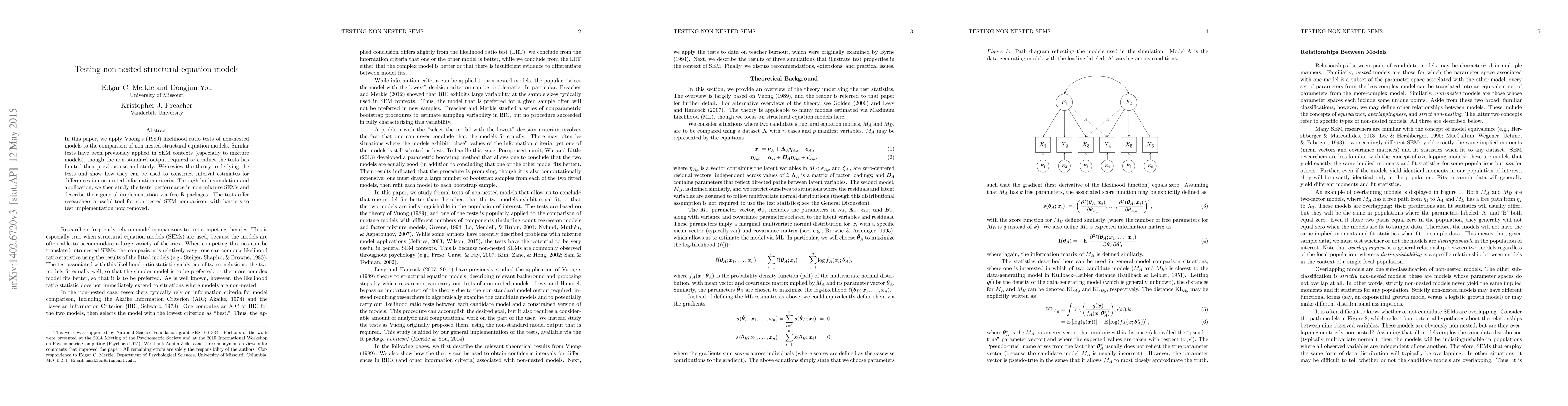 This paper introduces a new method for comparing non-nested structural equation models using Vuong's likelihood ratio tests, providing researchers with a useful tool to evaluate model fit and making it easier to implement these tests in SEM contexts.