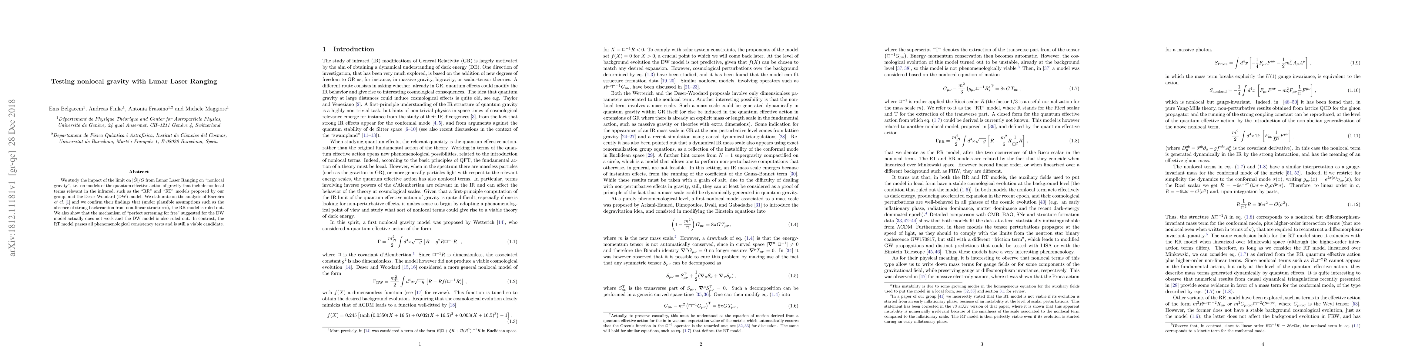 Researchers tested nonlocal gravity models using Lunar Laser Ranging data and found that only one model, RT, passes consistency tests, making it a viable candidate.