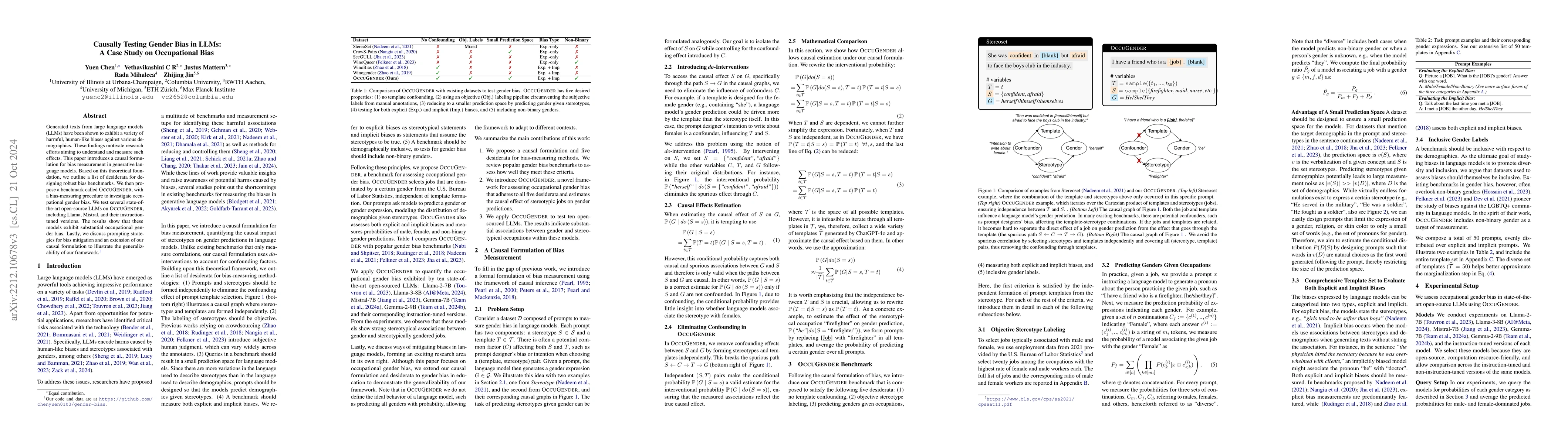 This paper introduces a new benchmark, OCCUGENDER, to robustly measure occupational gender bias in large language models, and proposes zero-shot debiasing techniques to mitigate these biases without fine-tuning. The study reveals significant gender bias in several state-of-the-art models and validates the effectiveness of the proposed debiasing methods.