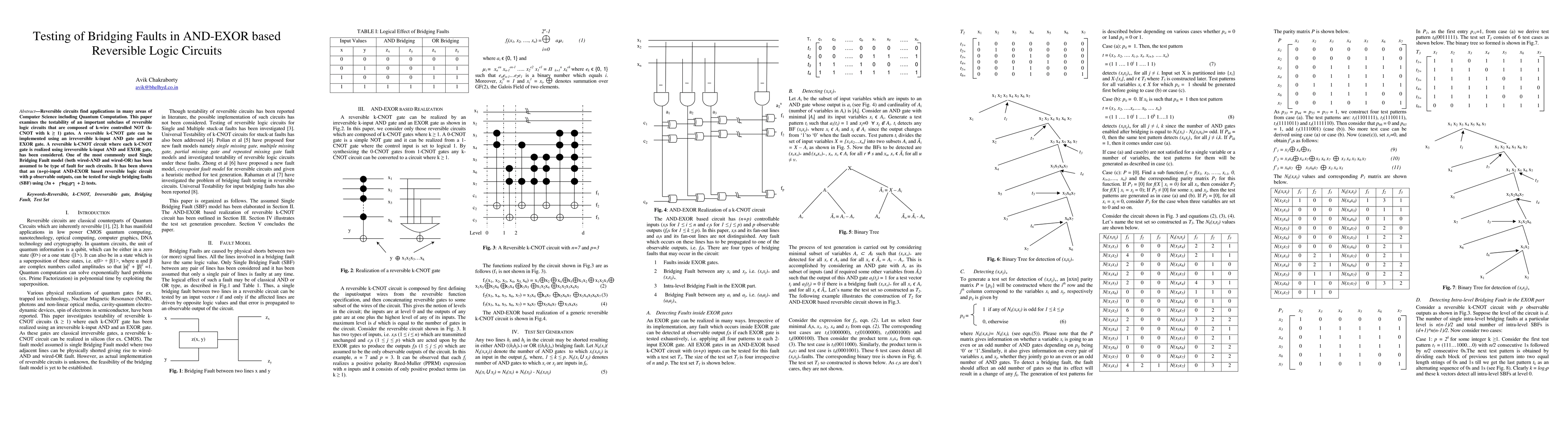 This paper investigates the testability of AND-EXOR based reversible logic circuits using k-CNOT gates, focusing on single bridging faults. It demonstrates that such circuits can be tested for these faults using a specific number of tests, determined by the circuit's input and output configurations.