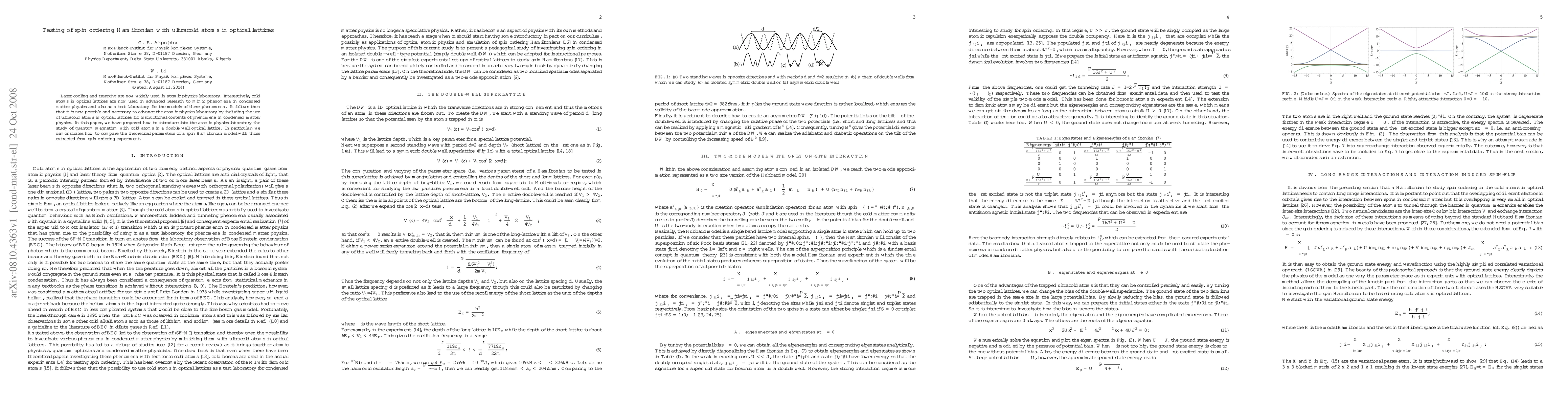 This paper proposes using ultracold atoms in optical lattices to study quantum magnetism in a double well setup, and demonstrates a method to compare theoretical spin Hamiltonian model parameters with experimental spin ordering data.