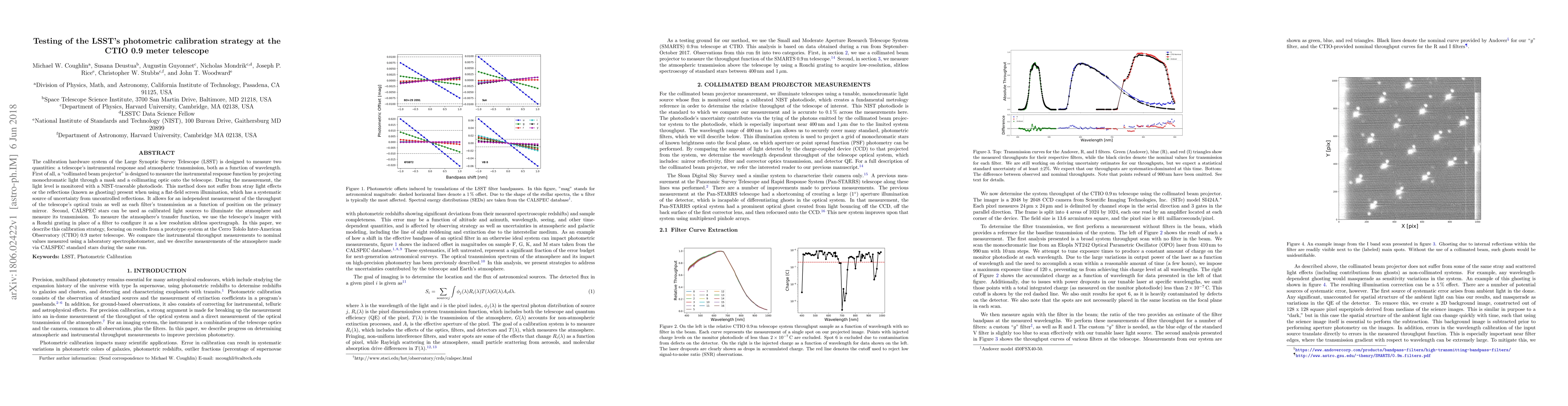 This paper tests the Large Synoptic Survey Telescope's photometric calibration strategy using a prototype system at the CTIO 0.9 meter telescope. It employs a collimated beam projector to measure the telescope's instrumental response and CALSPEC stars to assess atmospheric transmission, comparing results to laboratory measurements.
