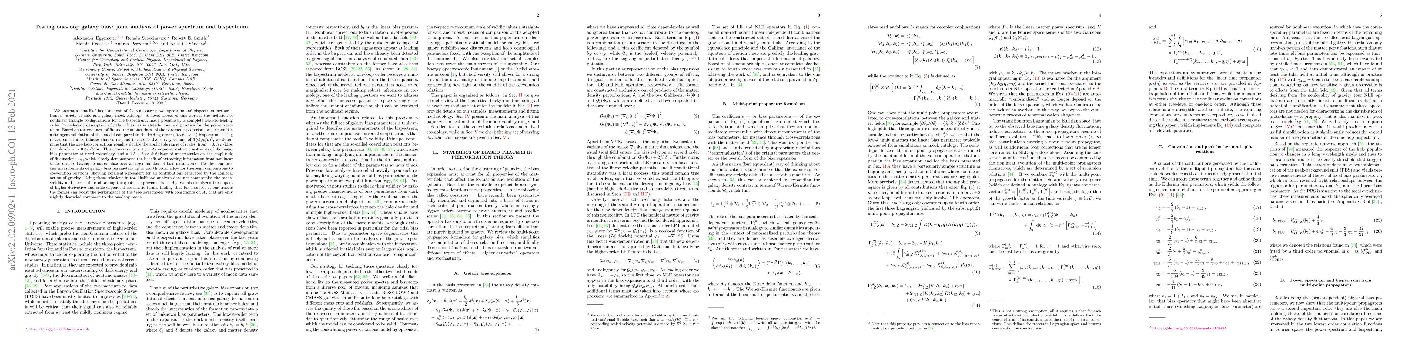 This paper validates a one-loop galaxy bias model for the real-space power spectrum and bispectrum, demonstrating a significant improvement over the tree-level model by doubling the effective range of scales and reducing uncertainties on the amplitude of fluctuations $A_s$. The study also shows excellent agreement between measured bias parameters and coevolution relations.