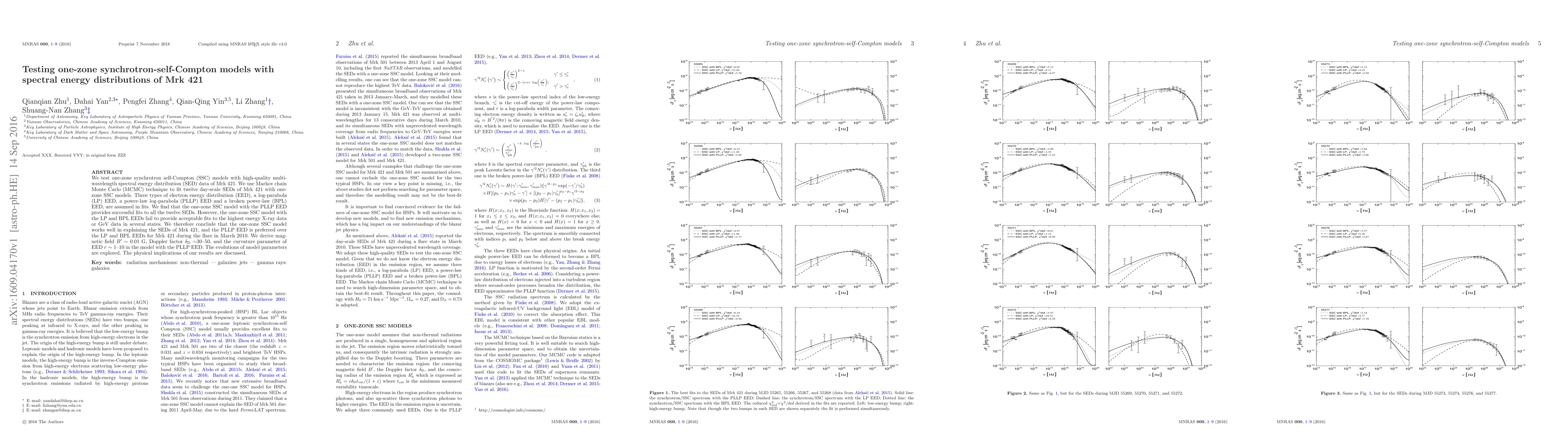 This paper tests one-zone synchrotron self-Compton (SSC) models against high-quality SED data of Mrk 421, finding that the power-law log-parabola electron energy distribution provides the best fit, while log-parabola and broken power-law distributions fail to explain the highest energy X-ray data. The preferred model yields magnetic field, Doppler factor, and curvature parameter estimates.