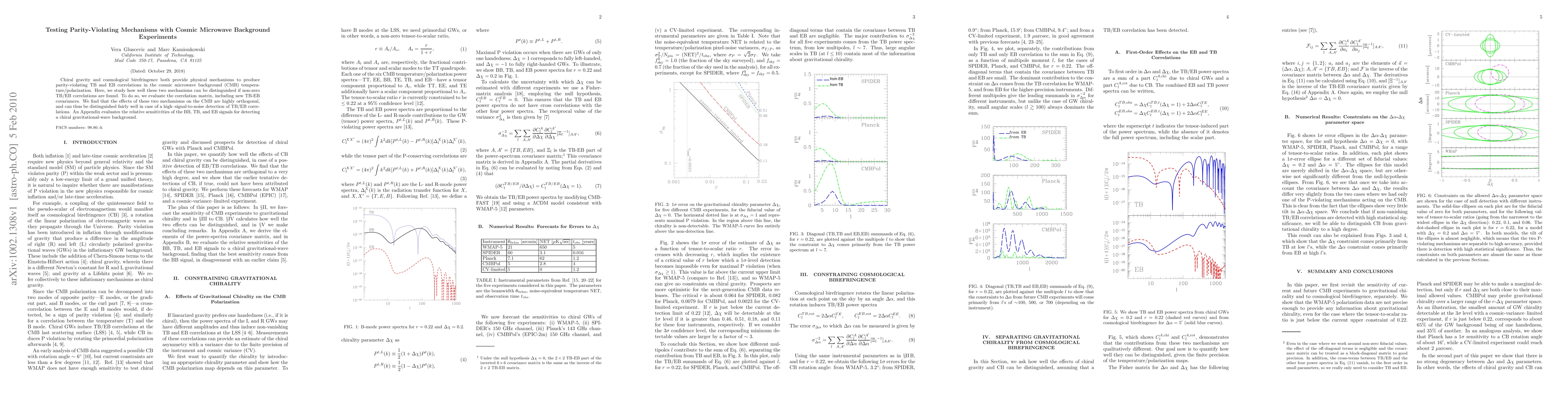 This paper investigates how chiral gravity and cosmological birefringence can be distinguished through their effects on parity-violating TB and EB correlations in the CMB. It concludes that these mechanisms are highly orthogonal, allowing for their differentiation with high-signal-to-noise detections. An appendix also assesses the sensitivity of BB, TB, and EB signals for detecting a chiral gravitational-wave background.