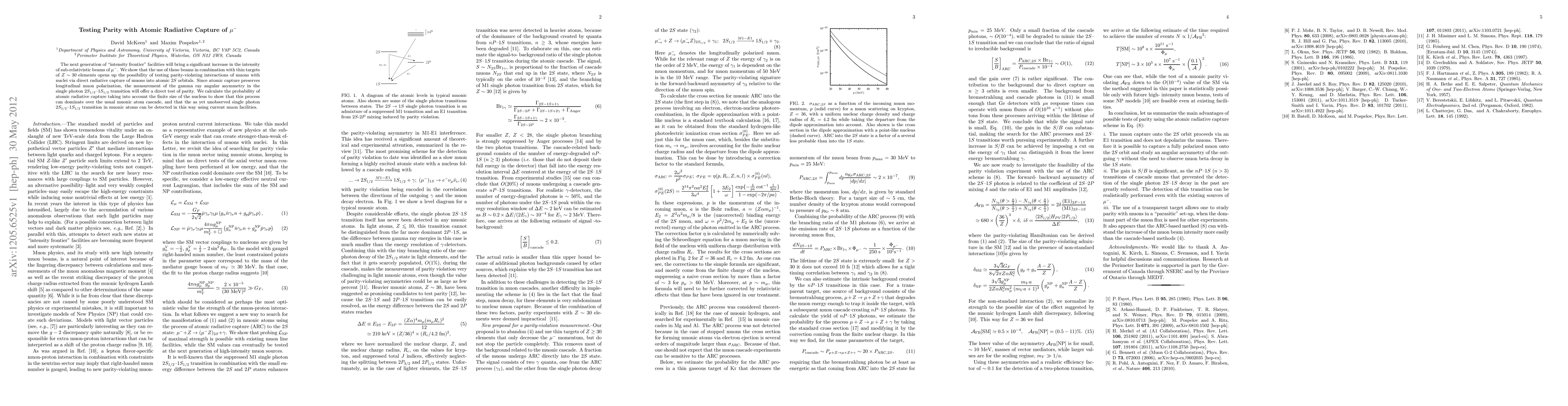 The next generation of "intensity frontier" facilities will bring a significant increase in the intensity of sub-relativistic beams of $\mu^-$. We show that the use of these beams in combination with thin targets of $Z\sim 30$ elements opens up the possibility of testing parity-violating interactions of muons with nuclei via direct radiative capture of muons into atomic 2S orbitals. Since atomic capture preserves longitudinal muon polarization, the measurement of the gamma ray angular asymmetry in the single photon $2S_{1/2}$-$1S_{1/2}$ transition will offer a direct test of parity. We calculate the probability of atomic radiative capture taking into account the finite size of the nucleus to show that this process can dominate over the usual muonic atom cascade, and that the as yet unobserved single photon $2S_{1/2}$-$1S_{1/2}$ transition in muonic atoms can be detected in this way using current muon facilities.
