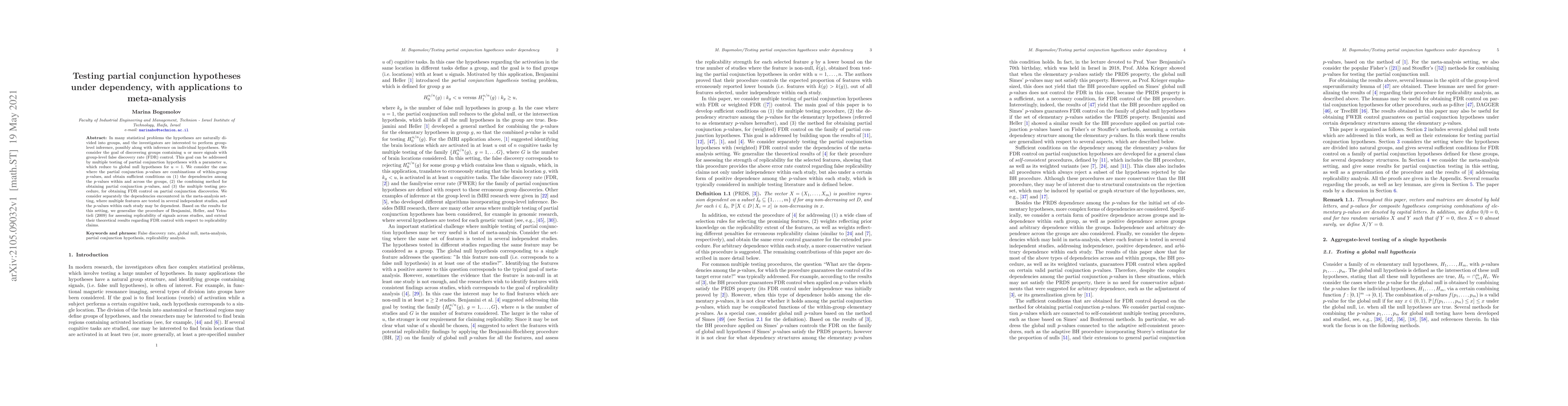 In many statistical problems the hypotheses are naturally divided into groups, and the investigators are interested to perform group-level inference, possibly along with inference on individual hypotheses. We consider the goal of discovering groups containing $u$ or more signals with group-level false discovery rate (FDR) control. This goal can be addressed by multiple testing of partial conjunction hypotheses with a parameter $u,$ which reduce to global null hypotheses for $u=1.$ We consider the case where the partial conjunction $p$-values are combinations of within-group $p$-values, and obtain sufficient conditions on (1) the dependencies among the $p$-values within and across the groups, (2) the combining method for obtaining partial conjunction $p$-values, and (3) the multiple testing procedure, for obtaining FDR control on partial conjunction discoveries. We consider separately the dependencies encountered in the meta-analysis setting, where multiple features are tested in several independent studies, and the $p$-values within each study may be dependent. Based on the results for this setting, we generalize the procedure of Benjamini, Heller, and Yekutieli (2009) for assessing replicability of signals across studies, and extend their theoretical results regarding FDR control with respect to replicability claims.