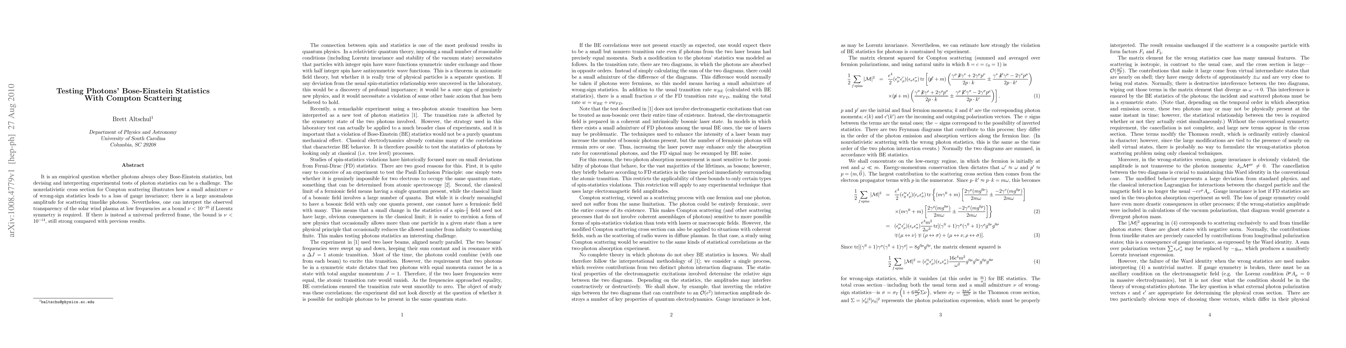 It is an empirical question whether photons always obey Bose-Einstein statistics, but devising and interpreting experimental tests of photon statistics can be a challenge. The nonrelativistic cross section for Compton scattering illustrates how a small admixture nu of wrong-sign statistics leads to a loss of gauge invariance; there is a large anomalous amplitude for scattering timelike photons. Nevertheless, one can interpret the observed transparency of the solar wind plasma at low frequencies as a bound nu < 10^(-25) if Lorentz symmetry is required. If there is instead a universal preferred frame, the bound is nu < 10^(-14), still strong compared with previous results.