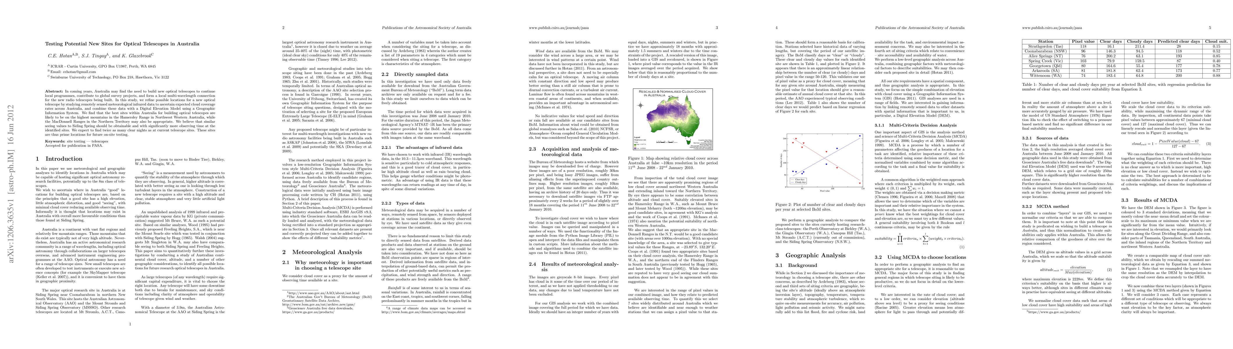 In coming years, Australia may find the need to build new optical telescopes to continue local programmes, contribute to global survey projects, and form a local multi-wavelength connection for the new radio telescopes being built. In this study, we refine possible locations for a new optical telescope by studying remotely sensed meteorological infrared data to ascertain expected cloud coverage rates across Australia, and combine these data with a Digital Elevation Model using a Geographic Information System. We find that the best sites within Australia for building optical telescopes are likely to be on the highest mountains in the Hamersley Range in Northwest Western Australia, while the MacDonnell Ranges in the Northern Territory may also be appropriate. We believe that similar seeing values to Siding Spring should be obtainable and with significantly more observing time at the identified sites. We expect to find twice as many clear nights as at current telescope sites. These sites are thus prime locations for future on-site testing.