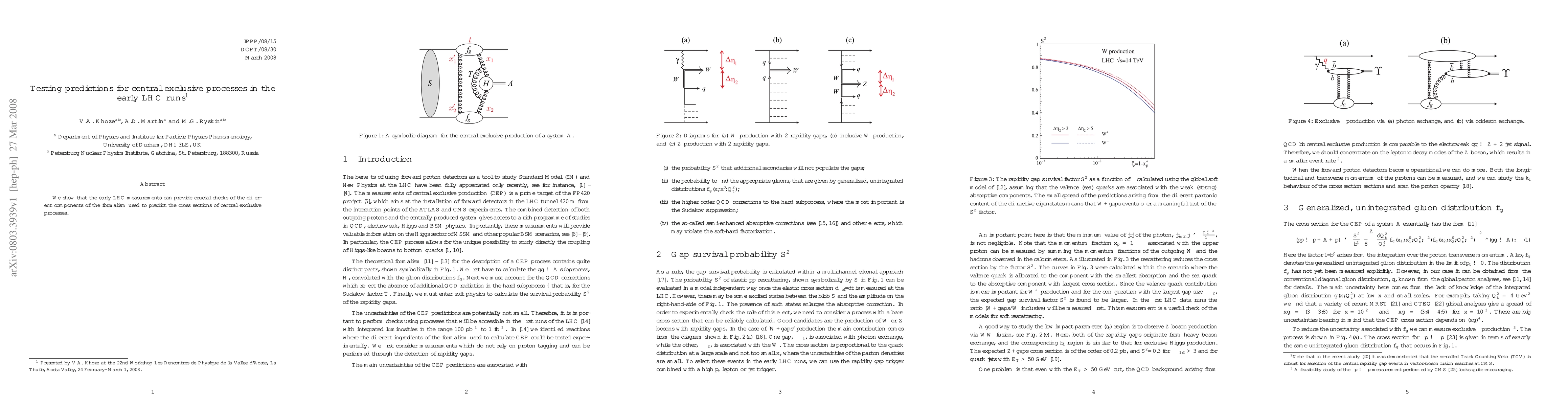 We show that the early LHC measurements can provide crucial checks of the different components of the formalism used to predict the cross sections of central exclusive processes.