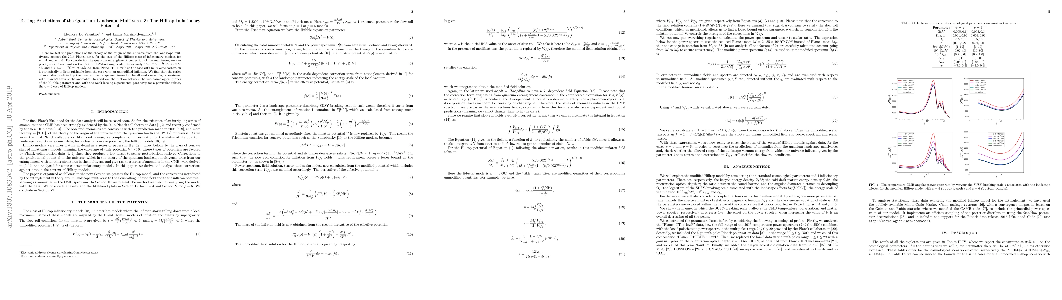 Researchers test predictions of the multiverse theory against 2015 Planck data for Hilltop inflationary models, finding that anomalies predicted by the multiverse correction are consistent with Planck's tests.
