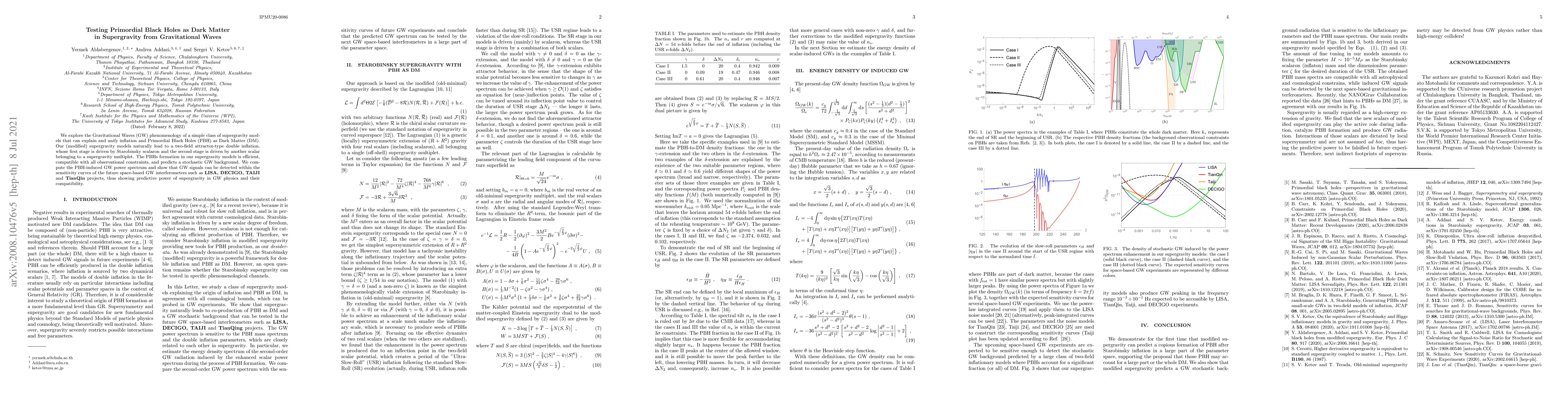 This research paper explores a connection between Primordial Black Holes, Dark Matter, and gravitational waves in supergravity models, suggesting that future space-based interferometers could potentially detect signals from these phenomena.