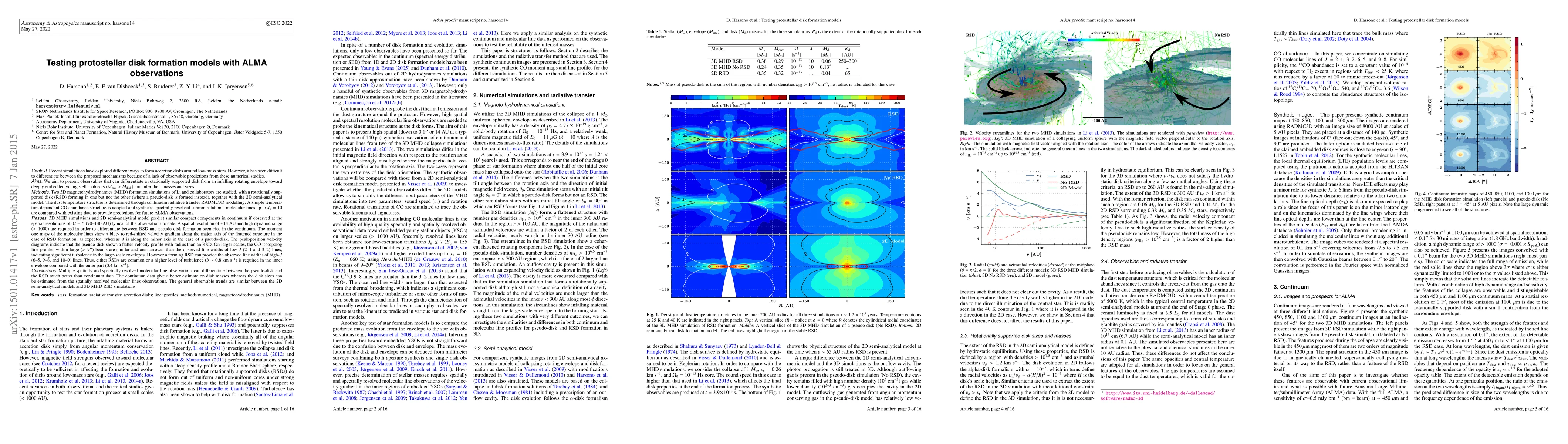 Abridged: Recent simulations have explored different ways to form accretion disks around low-mass stars. We aim to present observables to differentiate a rotationally supported disk from an infalling rotating envelope toward deeply embedded young stellar objects and infer their masses and sizes. Two 3D magnetohydrodynamics (MHD) formation simulations and 2D semi-analytical model are studied. The dust temperature structure is determined through continuum radiative transfer RADMC3D modelling. A simple temperature dependent CO abundance structure is adopted and synthetic spectrally resolved submm rotational molecular lines up to $J_{\rm u} = 10$ are simulated. All models predict similar compact components in continuum if observed at the spatial resolutions of 0.5-1$"$ (70-140 AU) typical of the observations to date. A spatial resolution of $\sim$14 AU and high dynamic range ($> 1000$) are required to differentiate between RSD and pseudo-disk in the continuum. The peak-position velocity diagrams indicate that the pseudo-disk shows a flatter velocity profile with radius than an RSD. On larger-scales, the CO isotopolog single-dish line profiles are similar and are narrower than the observed line widths of low-$J$ lines, indicating significant turbulence in the large-scale envelopes. However a forming RSD can provide the observed line widths of high-$J$ lines. Thus, either RSDs are common or a higher level of turbulence ($b \sim 0.8 \ {\rm km \ s^{-1}}$ ) is required in the inner envelope compared with the outer part. Multiple spatially and spectrally resolved molecular line observations are needed. The continuum data give a better estimate on disk masses whereas the disk sizes can be estimated from the spatially resolved molecular lines observations. The general observable trends are similar between the 2D semi-analytical models and 3D MHD RSD simulations.