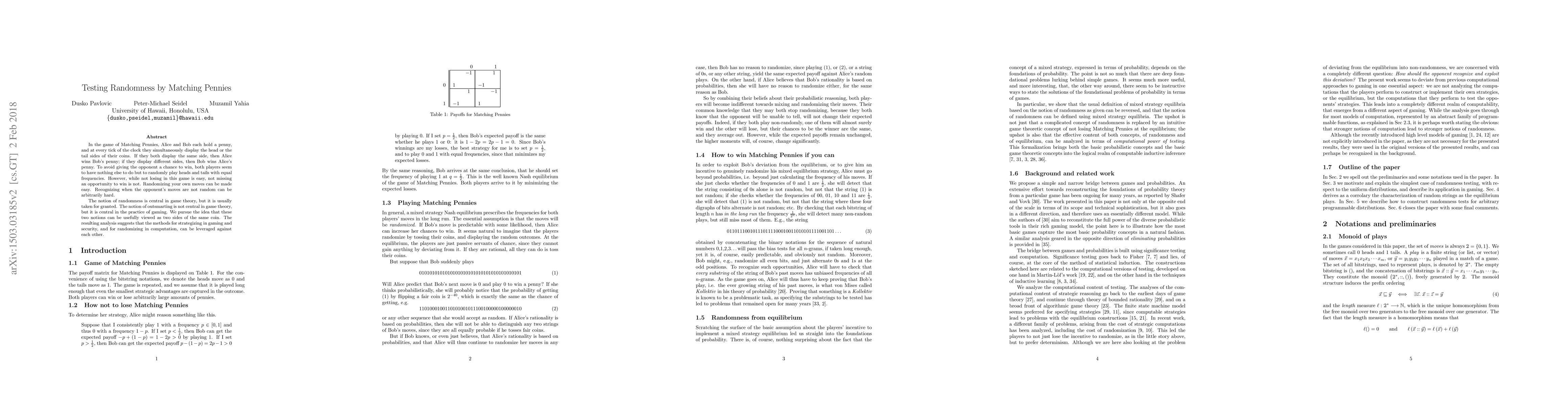 This paper explores the game of Matching Pennies to investigate the challenges in detecting non-randomness in opponents' strategies, emphasizing the difficulty in outsmarting an opponent while maintaining randomness in one's own moves. It suggests that randomness and outsmarting are two sides of the same coin in game theory.