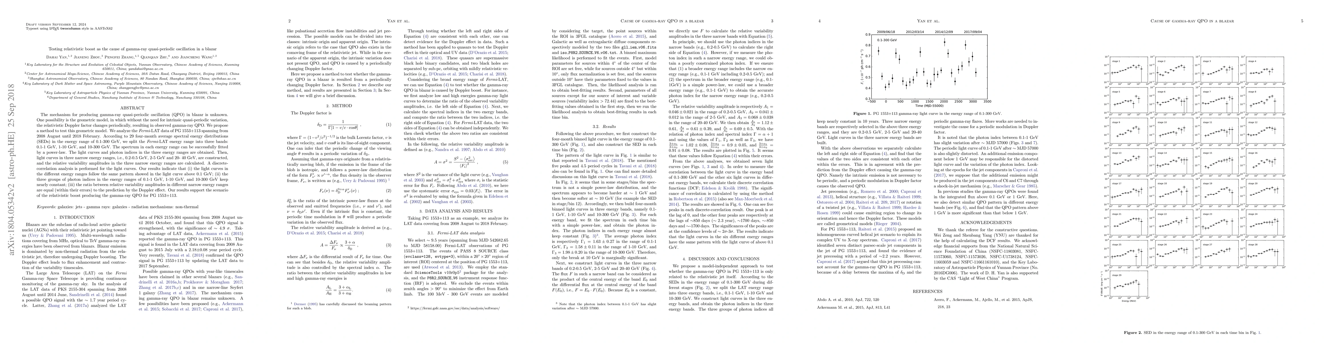 The mechanism for producing gamma-ray quasi-periodic oscillation (QPO) in blazar is unknown. One possibility is the geometric model, in which without the need for intrinsic quasi-periodic variation, the relativistic Doppler factor changes periodically, resulting in observed gamma-ray QPO. We propose a method to test this geometric model. We analyze the {\it Fermi}-LAT data of PG 1553+113 spanning from 2008 August until 2018 February. According to 29 four-month average spectral energy distributions (SEDs) in the energy range of 0.1-300 GeV, we split the {\it Fermi}-LAT energy range into three bands: 0.1-1 GeV, 1-10 GeV, and 10-300 GeV. The spectrum in each energy range can be successfully fitted by a power-law. The light curves and photon indices in the three energy ranges are obtained. Then, light curves in three narrow energy ranges, i.e., 0.2-0.5 GeV, 2-5 GeV and 20- 40 GeV, are constructed, and the relative variability amplitudes in the three narrow energy ranges are calculated. A discrete-correlation analysis is performed for the light curves. Our results indicate that (i) the light curves in the different energy ranges follow the same pattern showed in the light curve above 0.1 GeV; (ii) the three groups of photon indices in the energy ranges of 0.1-1 GeV, 1-10 GeV, and 10-300 GeV keep nearly constant; (iii) the ratio between relative variability amplitudes in different narrow energy ranges are equal (within their errors) to the prediction by the Doppler effect. Our results support the scenario of the relativistic boost producing the gamma-ray QPO for PG 1553+113.