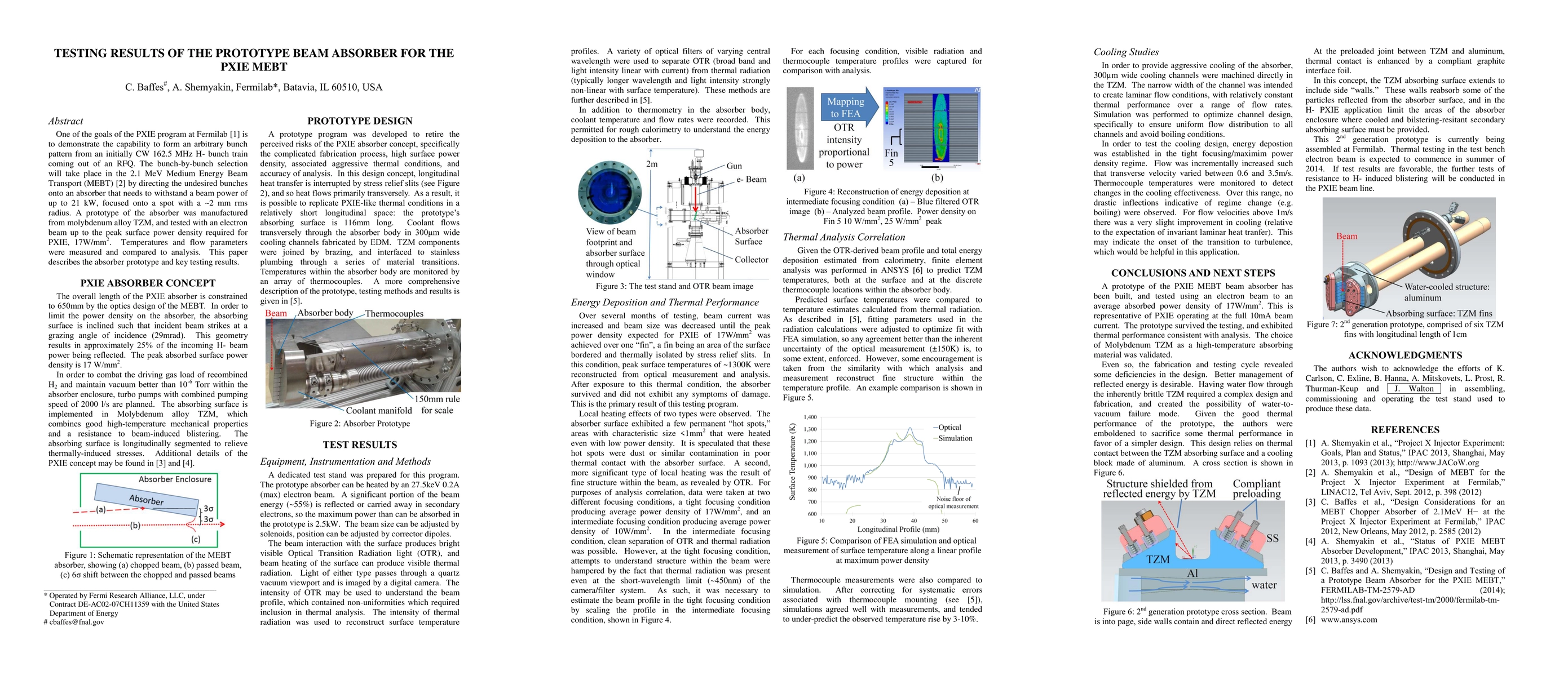 This paper presents a prototype beam absorber for the PXIE MEBT at Fermilab, designed to handle up to 21 kW beam power. Testing with an electron beam at 17W/mm² revealed temperature and flow parameters, which were compared to theoretical analysis.