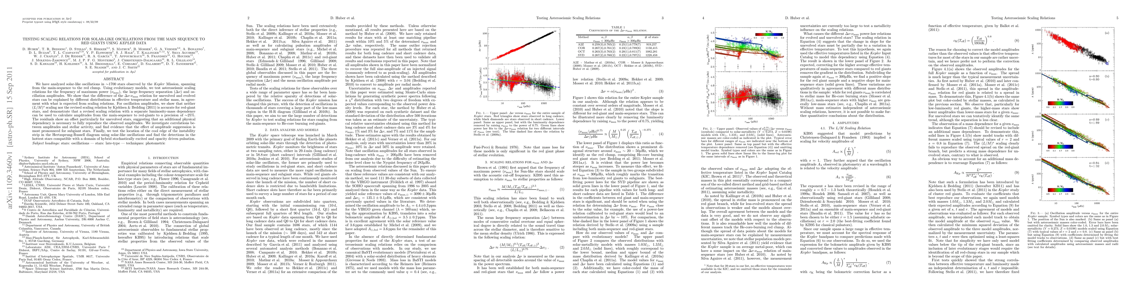 We have analyzed solar-like oscillations in ~1700 stars observed by the Kepler Mission, spanning from the main-sequence to the red clump. Using evolutionary models, we test asteroseismic scaling relations for the frequency of maximum power (nu_max), the large frequency separation (Delta_nu) and oscillation amplitudes. We show that the difference of the Delta_nu-nu_max relation for unevolved and evolved stars can be explained by different distributions in effective temperature and stellar mass, in agreement with what is expected from scaling relations. For oscillation amplitudes, we show that neither (L/M)^s scaling nor the revised scaling relation by Kjeldsen & Bedding (2011) are accurate for red-giant stars, and demonstrate that a revised scaling relation with a separate luminosity-mass dependence can be used to calculate amplitudes from the main-sequence to red-giants to a precision of ~25%. The residuals show an offset particularly for unevolved stars, suggesting that an additional physical dependency is necessary to fully reproduce the observed amplitudes. We investigate correlations between amplitudes and stellar activity, and find evidence that the effect of amplitude suppression is most pronounced for subgiant stars. Finally, we test the location of the cool edge of the instability strip in the Hertzsprung-Russell diagram using solar-like oscillations and find the detections in the hottest stars compatible with a domain of hybrid stochastically excited and opacity driven pulsation.