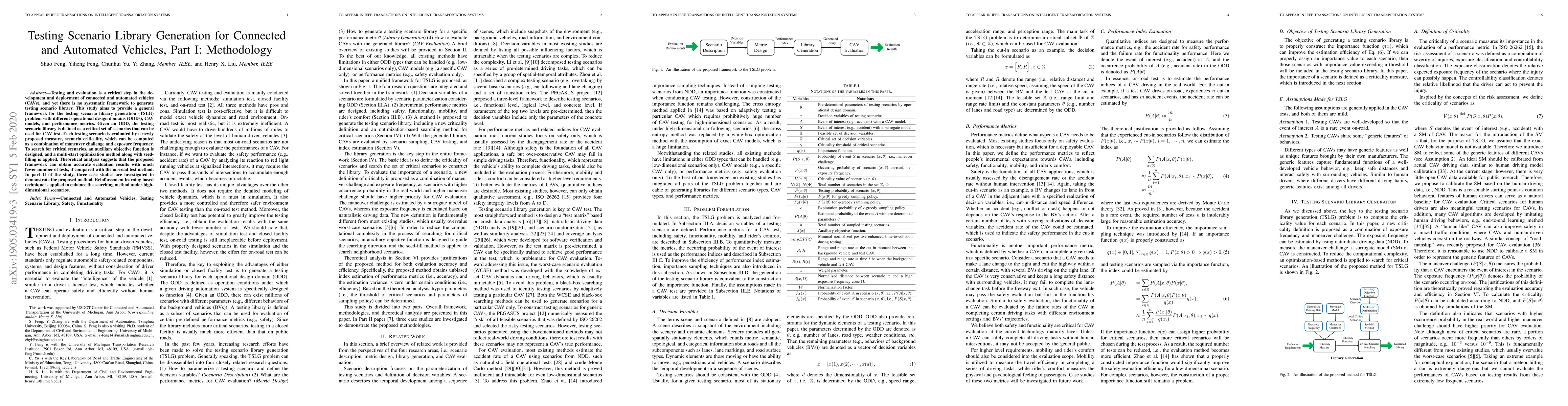 This paper introduces a systematic framework for generating testing scenario libraries for connected and automated vehicles (CAVs), focusing on the methodology. The framework evaluates scenarios based on their criticality, combining maneuver challenge and exposure frequency, and employs optimization techniques to identify critical scenarios efficiently.