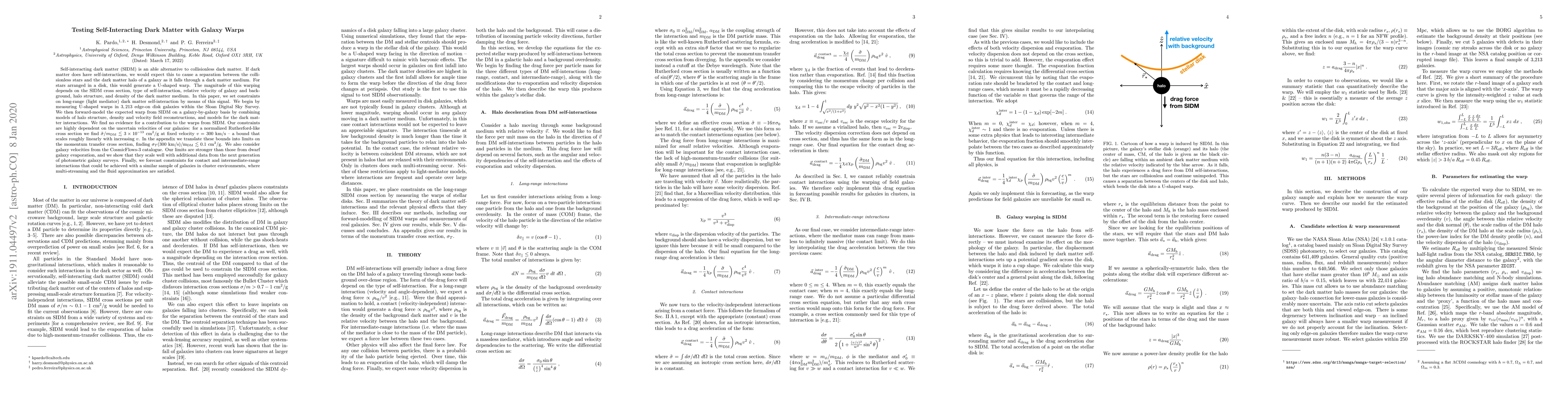 This paper investigates the potential for self-interacting dark matter (SIDM) through galaxy warps, finding no evidence for SIDM contributions. Constraints on long-range dark matter self-interactions are derived, with a limit of $\tilde{\sigma}/m_{\rm{DM}} \lesssim 3\times 10^{-13}~\rm{cm}^2/\rm{g}$ for a fixed velocity of $300~\rm{km/s}$.