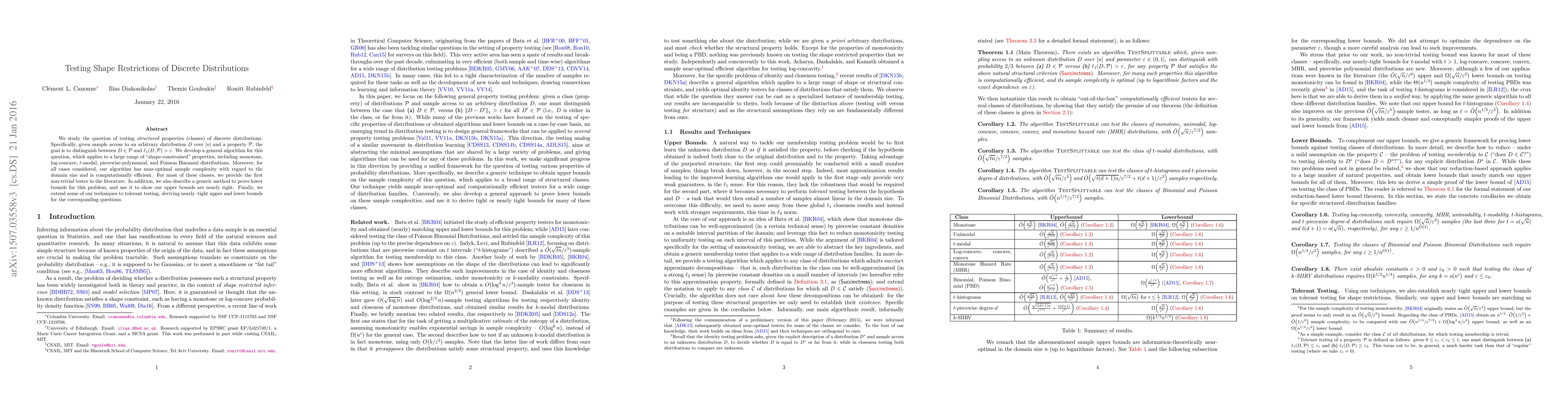 This paper develops a general algorithm for testing shape-constrained properties of discrete distributions, including monotone, log-concave, and $t$-modal distributions, with near-optimal sample complexity. It also introduces a method for proving lower bounds, demonstrating the tightness of the upper bounds.