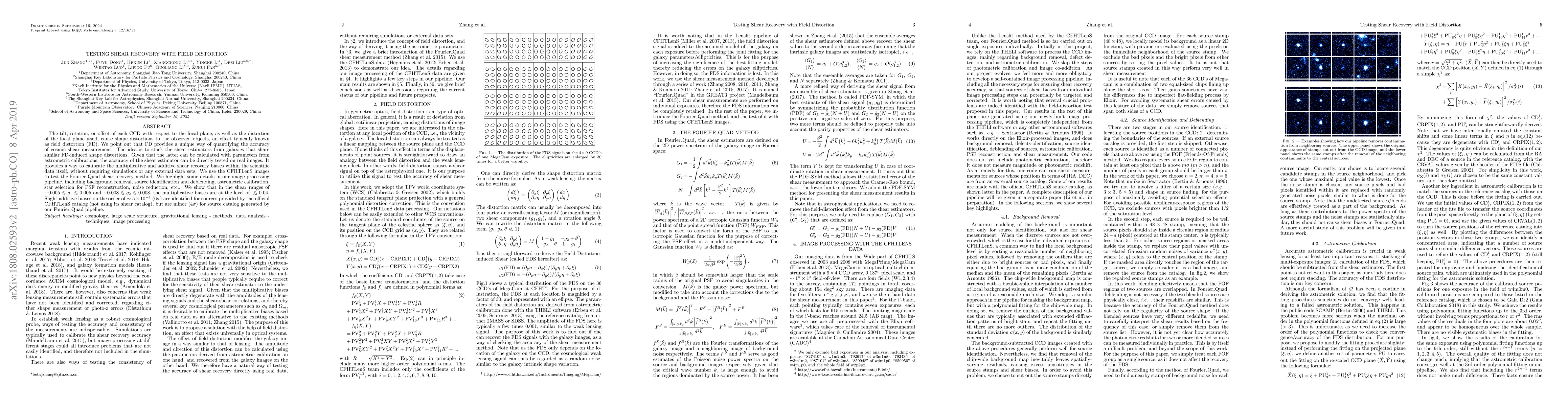 The tilt, rotation, or offset of each CCD with respect to the focal plane, as well as the distortion of the focal plane itself, cause shape distortions to the observed objects, an effect typically known as field distortion (FD). We point out that FD provides a unique way of quantifying the accuracy of cosmic shear measurement. The idea is to stack the shear estimators from galaxies that share similar FD-induced shape distortions. Given that the latter can be calculated with parameters from astrometric calibrations, the accuracy of the shear estimator can be directly tested on real images. It provides a way to calibrate the multiplicative and additive shear recovery biases within the scientific data itself, without requiring simulations or any external data sets. We use the CFHTLenS images to demonstrate the accuracy of the Fourier_Quad shear recovery method. We highlight some details in our image processing pipeline, including background removal, source identification and deblending, astrometric calibration, star selection for PSF reconstruction, noise reduction, etc.. We show that in the shear ranges of -0.005 < g_1 < 0.005 and -0.008 < g_2 < 0.008, the multiplicative biases are at the level of < 0.04. Slight additive biases on the order of 5E-4 (6 sigma) are identified for sources provided by the official CFHTLenS catalog (not using its shear catalog), but are minor (4 sigma) for source catalog generated by our Fourier_Quad pipeline.