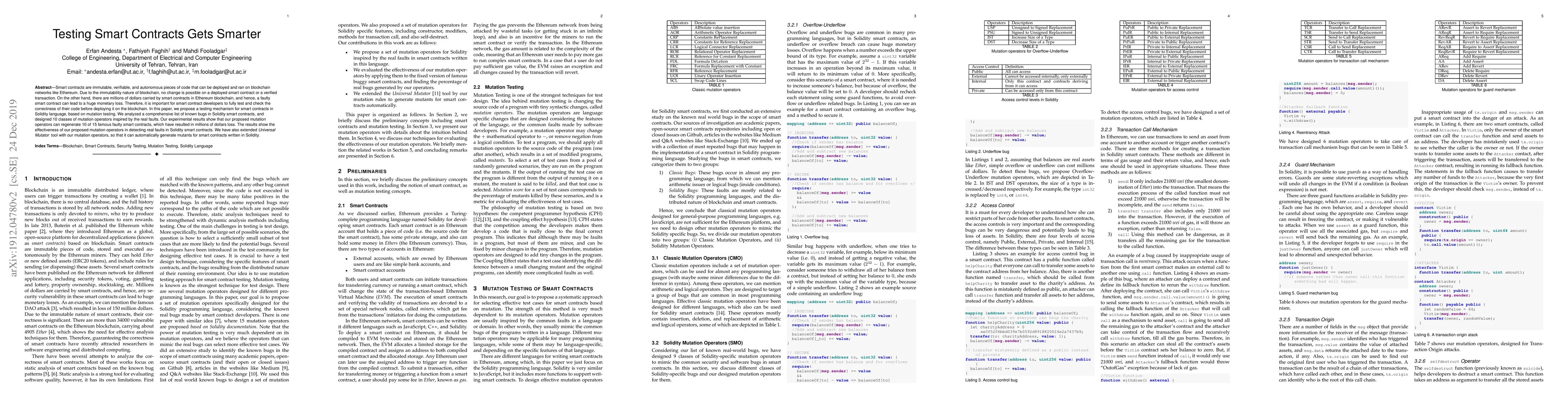 This paper proposes a mutation testing mechanism for Solidity smart contracts to detect faults before deployment on blockchain networks. The authors introduce 10 mutation operator classes inspired by known bugs and demonstrate their effectiveness in regenerating 10 out of 15 faulty smart contracts, highlighting the potential to prevent significant monetary losses.