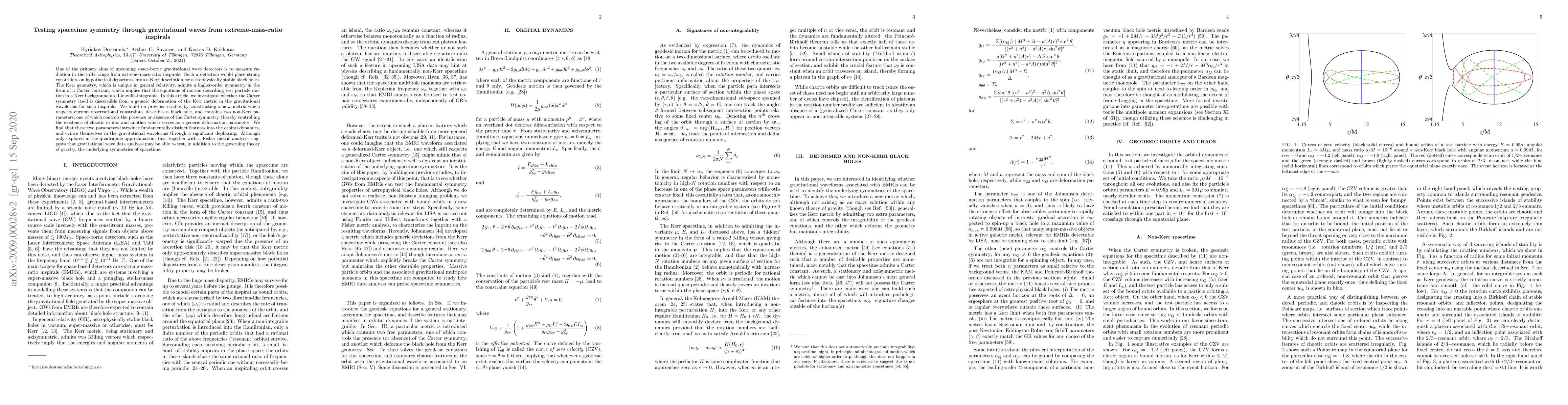 One of the primary aims of upcoming space-borne gravitational wave detectors is to measure radiation in the mHz range from extreme-mass-ratio inspirals. Such a detection would place strong constraints on hypothetical departures from a Kerr description for astrophysically stable black holes. The Kerr geometry, which is unique in general relativity, admits a higher-order symmetry in the form of a Carter constant, which implies that the equations of motion describing test particle motion in a Kerr background are Liouville-integrable. In this article, we investigate whether the Carter symmetry itself is discernible from a generic deformation of the Kerr metric in the gravitational waveforms for such inspirals. We build on previous studies by constructing a new metric which respects current observational constraints, describes a black hole, and contains two non-Kerr parameters, one of which controls the presence or absence of the Carter symmetry, thereby controlling the existence of chaotic orbits, and another which serves as a generic deformation parameter. We find that these two parameters introduce fundamentally distinct features into the orbital dynamics, and evince themselves in the gravitational waveforms through a significant dephasing. Although only explored in the quadrupole approximation, this, together with a Fisher metric analysis, suggests that gravitational wave data analysis may be able to test, in addition to the governing theory of gravity, the underlying symmetries of spacetime.