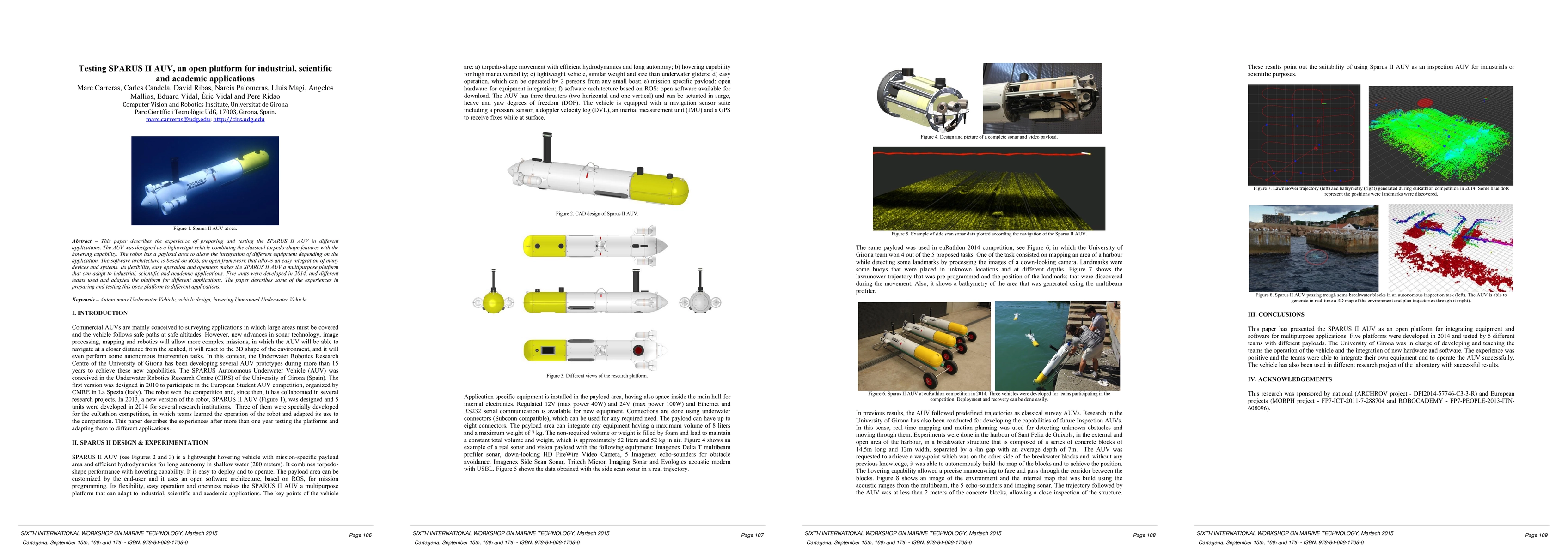 The SPARUS II AUV, a lightweight platform with ROS-based software architecture, was tested in various industrial, scientific, and academic applications, demonstrating its flexibility and adaptability for different uses.