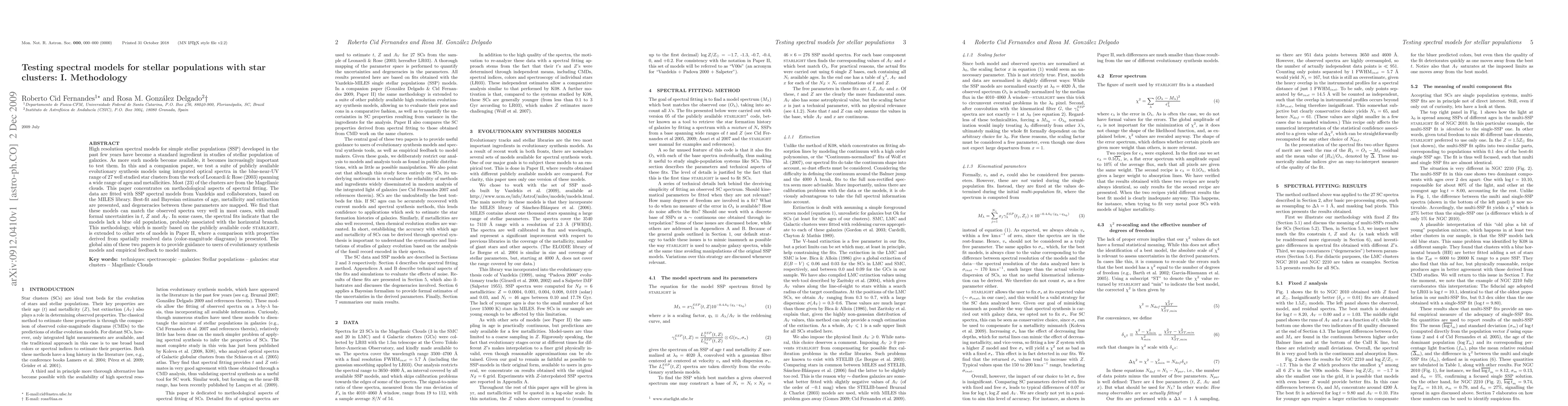 High resolution spectral models for simple stellar populations (SSP) developed in the past few years have become a standard ingredient in studies of stellar population of galaxies. As more such models become available, it becomes increasingly important to test them. In this and a companion paper, we test a suite of publicly available evolutionary synthesis models using integrated optical spectra in the blue-near-UV range of 27 well studied star clusters from the work of Leonardi & Rose (2003) spanning a wide range of ages and metallicities. Most (23) of the clusters are from the Magellanic clouds. This paper concentrates on methodological aspects of spectral fitting. The data are fitted with SSP spectral models from Vazdekis and collaborators, based on the MILES library. Best-fit and Bayesian estimates of age, metallicity and extinction are presented, and degeneracies between these parameters are mapped. We find that these models can match the observed spectra very well in most cases, with small formal uncertainties in t, Z and A_V. In some cases, the spectral fits indicate that the models lack a blue old population, probably associated with the horizontal branch. This methodology, which is mostly based on the publicly available code STARLIGHT, is extended to other sets of models in Paper II, where a comparison with properties derived from spatially resolved data (color-magnitude diagrams) is presented. The global aim of these two papers is to provide guidance to users of evolutionary synthesis models and empirical feedback to model makers.
