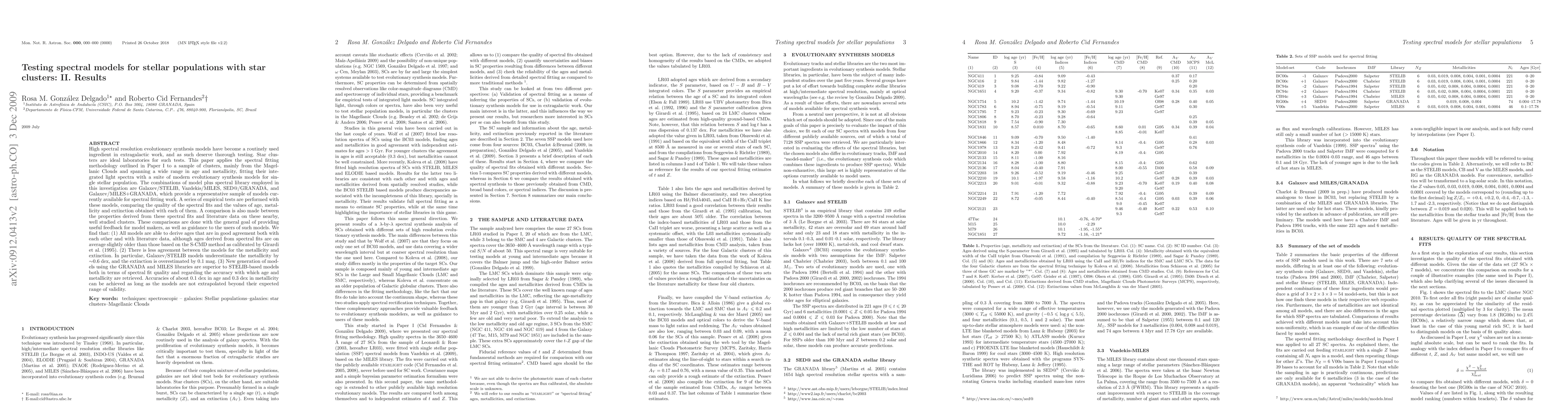 High spectral resolution evolutionary synthesis models have become a routinely used ingredient in extragalactic work, and as such deserve thorough testing. Star clusters are ideal laboratories for such tests. This paper applies the spectral fitting methodology outlined in Paper I to a sample of clusters, mainly from the Magellanic Clouds and spanning a wide range in age and metallicity, fitting their integrated light spectra with a suite of modern evolutionary synthesis models for single stellar population. The combinations of model plus spectral library employed in this investigation are Galaxev/STELIB, Vazdekis/MILES, SED@/GRANADA, and Galaxev/MILES+GRANADA, which provide a representative sample of models currently available for spectral fitting work. A series of empirical tests are performed with these models, comparing the quality of the spectral fits and the values of age, metallicity and extinction obtained with each of them. A comparison is also made between the properties derived from these spectral fits and literature data on these nearby, well studied clusters. These comparisons are done with the general goal of providing useful feedback for model makers, as well as guidance to the users of such models. We find that new generation of models using the GRANADA and MILES libraries are superior to STELIB-based models both in terms of spectral fit quality and regarding the accuracy with which age and metallicity are retrieved. Accuracies of about 0.1 dex in age and 0.3 dex in metallicity can be achieved as long as the models are not extrapolated beyond their expected range of validity.