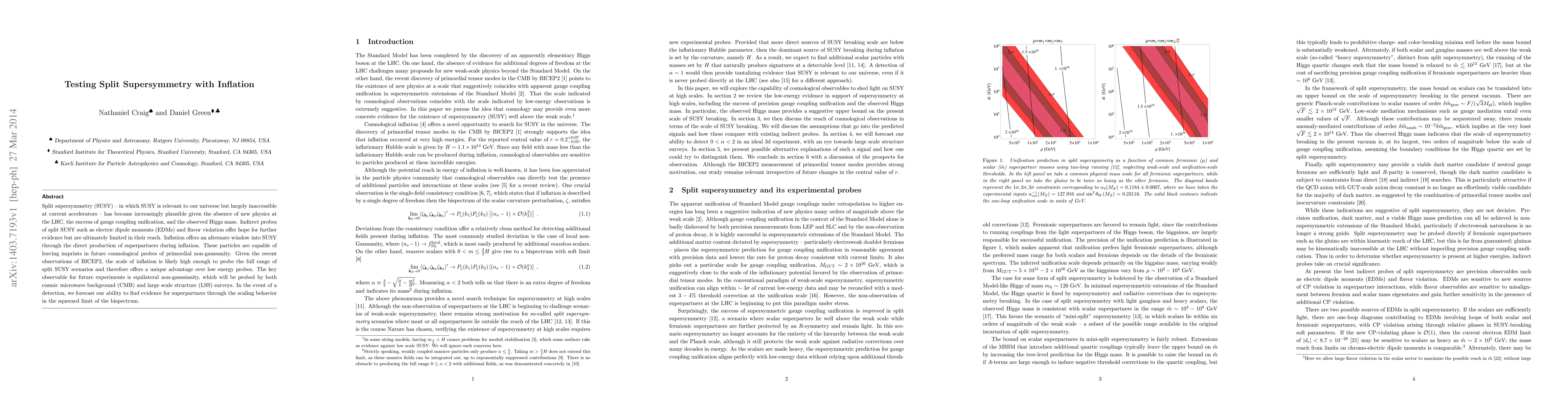 Split supersymmetry (SUSY) -- in which SUSY is relevant to our universe but largely inaccessible at current accelerators -- has become increasingly plausible given the absence of new physics at the LHC, the success of gauge coupling unification, and the observed Higgs mass. Indirect probes of split SUSY such as electric dipole moments (EDMs) and flavor violation offer hope for further evidence but are ultimately limited in their reach. Inflation offers an alternate window into SUSY through the direct production of superpartners during inflation. These particles are capable of leaving imprints in future cosmological probes of primordial non-gaussianity. Given the recent observations of BICEP2, the scale of inflation is likely high enough to probe the full range of split SUSY scenarios and therefore offers a unique advantage over low energy probes. The key observable for future experiments is equilateral non-gaussianity, which will be probed by both cosmic microwave background (CMB) and large scale structure (LSS) surveys. In the event of a detection, we forecast our ability to find evidence for superpartners through the scaling behavior in the squeezed limit of the bispectrum.