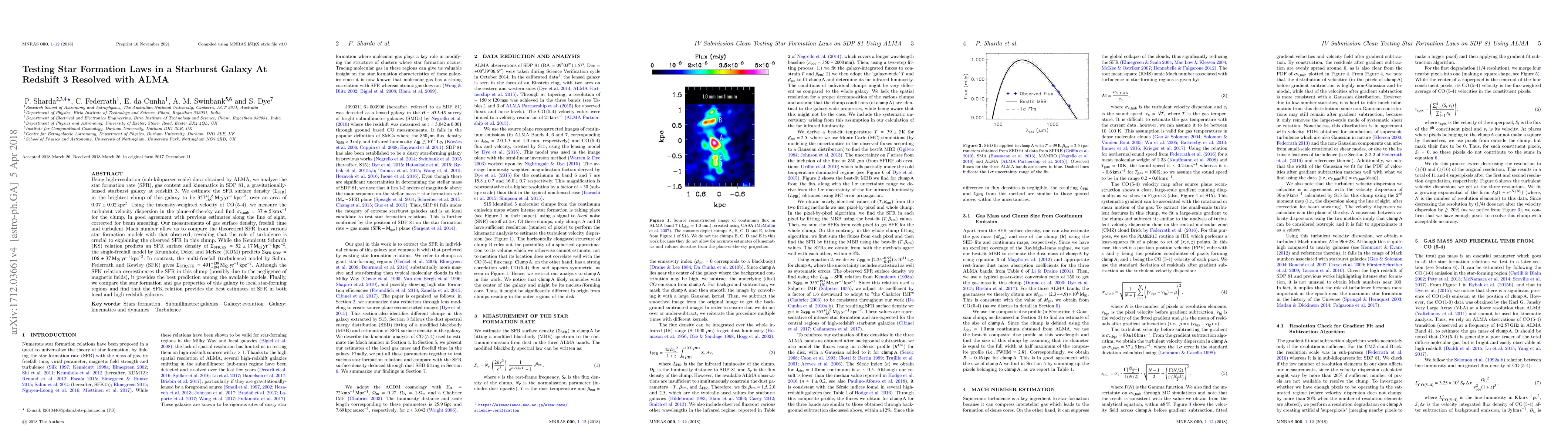 Using high-resolution (sub-kiloparsec scale) submillimeter data obtained by ALMA, we analyze the star formation rate (SFR), gas content and kinematics in SDP 81, a gravitationally-lensed star-forming galaxy at redshift 3. We estimate the SFR surface density ($\Sigma_{\mathrm{SFR}}$) in the brightest clump of this galaxy to be $357^{+135}_{-85}\,\mathrm{M_{\odot}\,yr^{-1}\,kpc^{-2}}$, over an area of $0.07\pm0.02\,\mathrm{kpc}^2$. Using the intensity-weighted velocity of CO$\,$(5-4), we measure the turbulent velocity dispersion in the plane-of-the-sky and find $\sigma_{\mathrm{v,turb}} = 37\pm5\,\mathrm{km\,s}^{-1}$ for the star-forming clump, in good agreement with previous estimates along the line of sight. Our measurements of gas surface density, freefall time and turbulent Mach number reveal that the role of turbulence is vital to explaining the observed SFR in this clump. While the Kennicutt Schmidt (KS) relation predicts a SFR surface density of $\Sigma_{\mathrm{SFR,KS}} = 52\pm17\,\mathrm{M_{\odot}\,yr^{-1}\,kpc^{-2}}$, the single-freefall model by Krumholz, Dekel and McKee (KDM) predicts $\Sigma_{\mathrm{SFR,KDM}} = 106\pm37\,\mathrm{M_{\odot}\,yr^{-1}\,kpc^{-2}}$. In contrast, the multi-freefall (turbulence) model by Salim, Federrath and Kewley (SFK) gives $\Sigma_{\mathrm{SFR,SFK}} = 491^{+139}_{-194}\,\mathrm{M_{\odot}\,yr^{-1}\,kpc^{-2}}$. Although the SFK relation overestimates the SFR in this clump (possibly due to the ignorance of magnetic field), it provides the best prediction among the available models. Finally, we compare the star formation and gas properties of this high-redshift galaxy to local star-forming regions and find that the SFK relation provides the best estimates of SFR in both local and high-redshift galaxies.