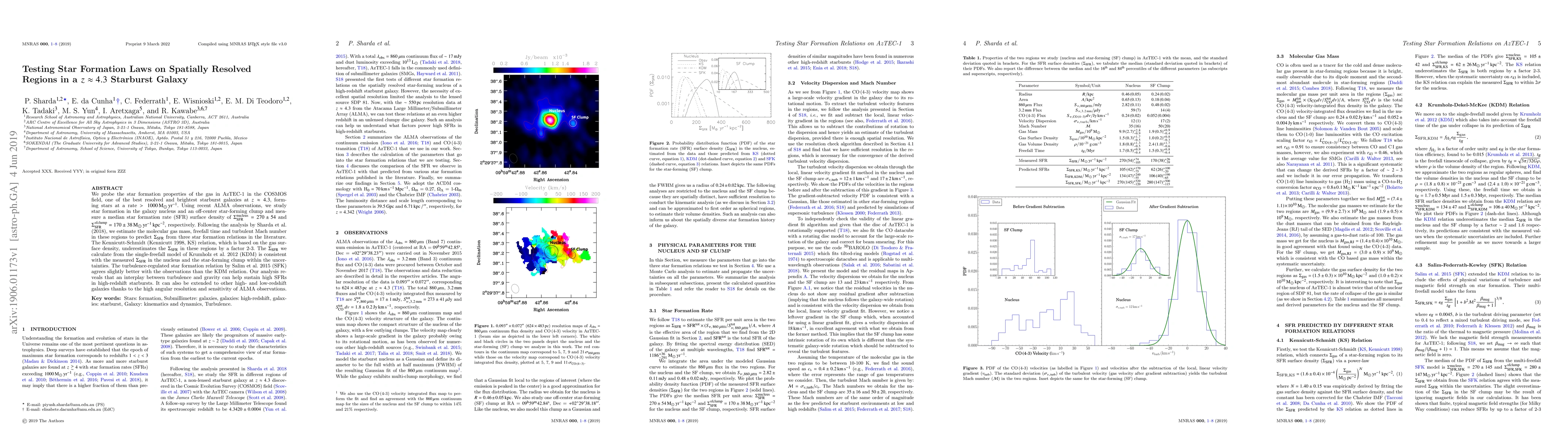 We probe the star formation properties of the gas in AzTEC-1 in the COSMOS field, one of the best resolved and brightest starburst galaxies at $z \approx 4.3$, forming stars at a rate > 1000 $\mathrm{M_{\odot}}\,\mathrm{yr^{-1}}$. Using recent ALMA observations, we study star formation in the galaxy nucleus and an off-center star-forming clump and measure a median star formation rate (SFR) surface density of $\Sigma^{\mathrm{nucleus}}_{\mathrm{SFR}} = 270\pm54$ and $\Sigma^{\mathrm{sfclump}}_{\mathrm{SFR}} = 170\pm38\,\mathrm{M_{\odot}}\,\mathrm{yr}^{-1}\,\mathrm{kpc}^{-2}$, respectively. Following the analysis by Sharda et al. (2018), we estimate the molecular gas mass, freefall time and turbulent Mach number in these regions to predict $\Sigma_{\mathrm{SFR}}$ from three star formation relations in the literature. The Kennicutt-Schmidt (Kennicutt 1998, KS) relation, which is based on the gas surface density, underestimates the $\Sigma_{\mathrm{SFR}}$ in these regions by a factor 2-3. The $\Sigma_{\mathrm{SFR}}$ we calculate from the single-freefall model of Krumholz et al. 2012 (KDM) is consistent with the measured $\Sigma_{\mathrm{SFR}}$ in the nucleus and the star-forming clump within the uncertainties. The turbulence-regulated star formation relation by Salim et al. 2015 (SFK) agrees slightly better with the observations than the KDM relation. Our analysis reveals that an interplay between turbulence and gravity can help sustain high SFRs in high-redshift starbursts. It can also be extended to other high- and low-redshift galaxies thanks to the high angular resolution and sensitivity of ALMA observations.