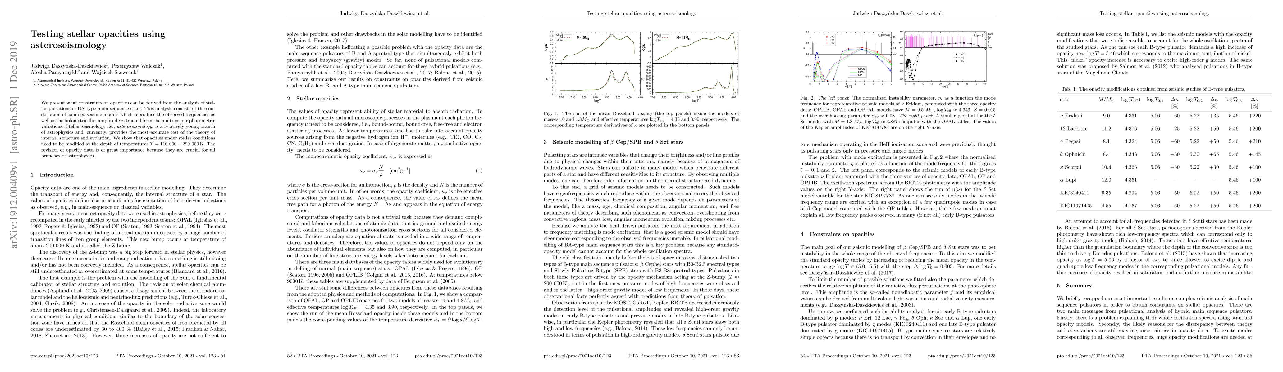 We present what constraints on opacities can be derived from the analysis of stellar pulsations of BA-type main-sequence stars. This analysis consists of the construction of complex seismic models which reproduce the observed frequencies as well as the bolometric flux amplitude extracted from the multi-colour photometric variations. Stellar seismology, i.e., {\it asteroseismology}, is a relatively young branch of astrophysics and, currently, provides the most accurate test of the theory of internal structure and evolution. We show that opacities under stellar conditions need to be modified at the depth of temperatures $T=110~000-290~000$\,K. The revision of opacity data is of great importance because they are crucial for all branches of astrophysics.