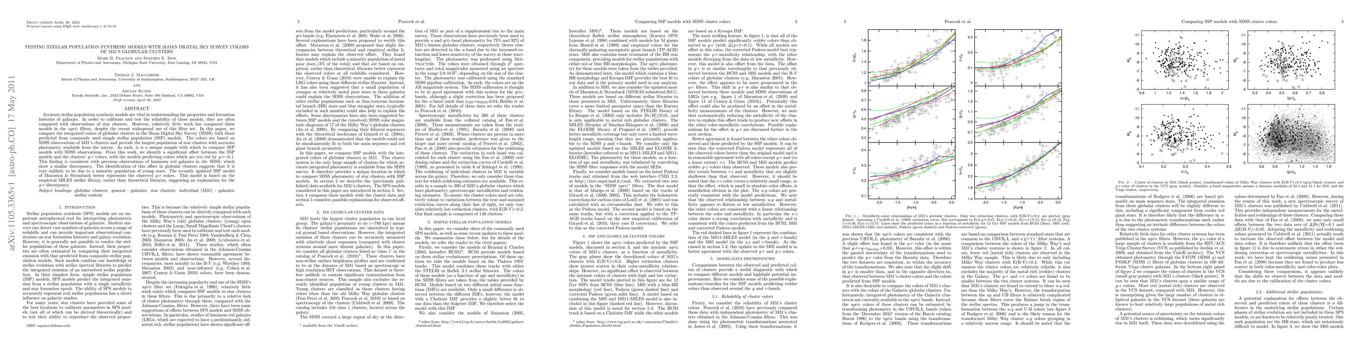 Accurate stellar population synthesis models are vital in understanding the properties and formation histories of galaxies. In order to calibrate and test the reliability of these models, they are often compared with observations of star clusters. However, relatively little work has compared these models in the ugriz filters, despite the recent widespread use of this filter set. In this paper, we compare the integrated colors of globular clusters in the Sloan Digital Sky Survey (SDSS) with those predicted from commonly used simple stellar population (SSP) models. The colors are based on SDSS observations of M31's clusters and provide the largest population of star clusters with accurate photometry available from the survey. As such, it is a unique sample with which to compare SSP models with SDSS observations. From this work, we identify a significant offset between the SSP models and the clusters' g-r colors, with the models predicting colors which are too red by g-r\sim0.1. This finding is consistent with previous observations of luminous red galaxies in the SDSS, which show a similar discrepancy. The identification of this offset in globular clusters suggests that it is very unlikely to be due to a minority population of young stars. The recently updated SSP model of Maraston & Stromback better represents the observed g-r colors. This model is based on the empirical MILES stellar library, rather than theoretical libraries, suggesting an explanation for the g-r discrepancy.