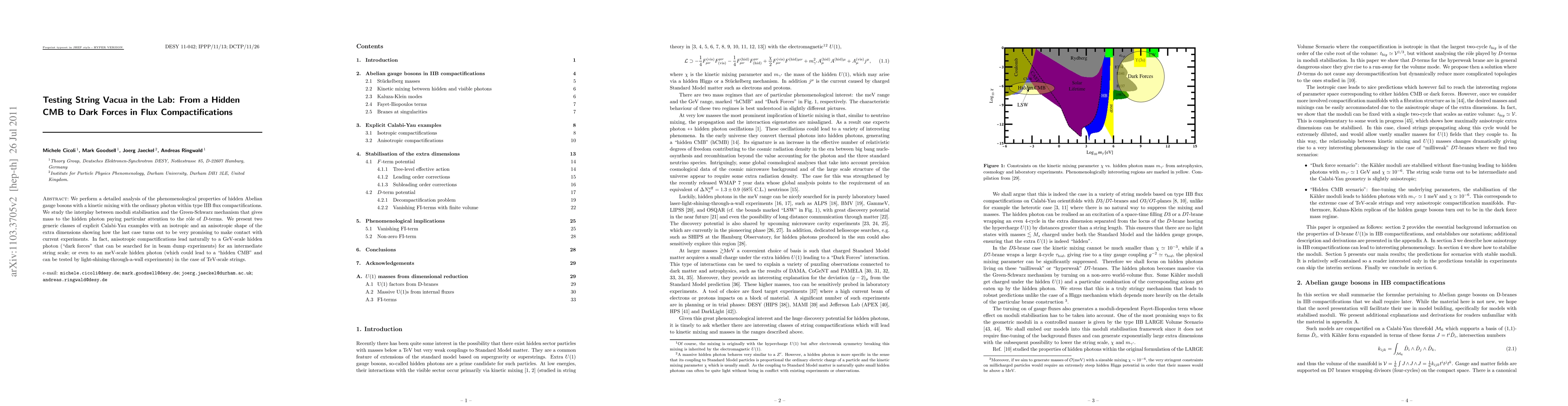 We perform a detailed analysis of the phenomenological properties of hidden Abelian gauge bosons with a kinetic mixing with the ordinary photon within type IIB flux compactifications. We study the interplay between moduli stabilisation and the Green-Schwarz mechanism that gives mass to the hidden photon paying particular attention to the role of D-terms. We present two generic classes of explicit Calabi-Yau examples with an isotropic and an anisotropic shape of the extra dimensions showing how the last case turns out to be very promising to make contact with current experiments. In fact, anisotropic compactifications lead naturally to a GeV-scale hidden photon ("dark forces" that can be searched for in beam dump experiments) for an intermediate string scale; or even to an meV-scale hidden photon (which could lead to a "hidden CMB" and can be tested by light-shining-through-a-wall experiments) in the case of TeV-scale strings.