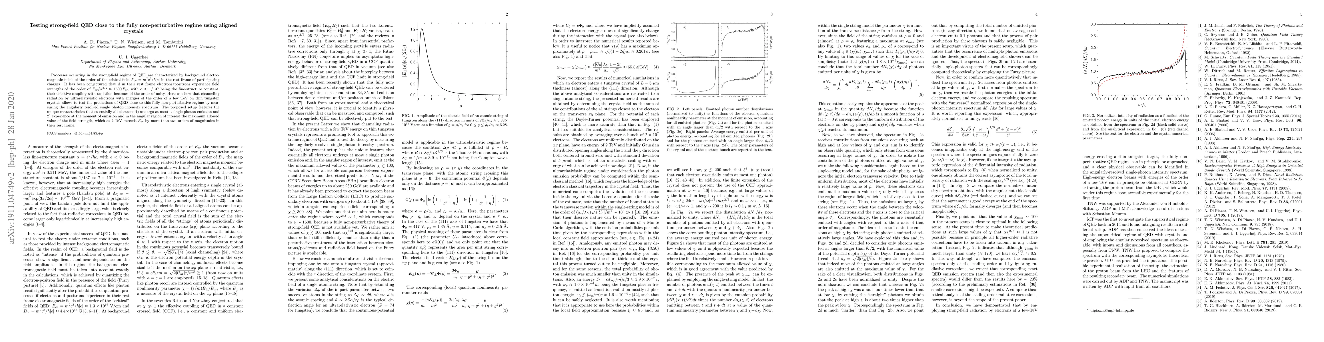 Processes occurring in the strong-field regime of QED are characterized by background electromagnetic fields of the order of the critical field $F_{cr}=m^2c^3/\hbar|e|$ in the rest frame of participating charges. It has been conjectured that if in their rest frame electrons/positrons experience field strengths of the order of $F_{cr}/\alpha^{3/2}\approx 1600\,F_{cr}$, with $\alpha\approx 1/137$ being the fine-structure constant, their effective coupling with radiation becomes of the order of unity. Here we show that channeling radiation by ultrarelativistic electrons with energies of the order of a few TeV on thin tungsten crystals allows to test the predictions of QED close to this fully non-perturbative regime by measuring the angularly resolved single photon intensity spectrum. The proposed setup features the unique characteristics that essentially all electrons 1) undergo at most a single photon emission and 2) experience at the moment of emission and in the angular region of interest the maximum allowed value of the field strength, which at $2\;\text{TeV}$ exceeds $F_{cr}$ by more than two orders of magnitudes in their rest frame.