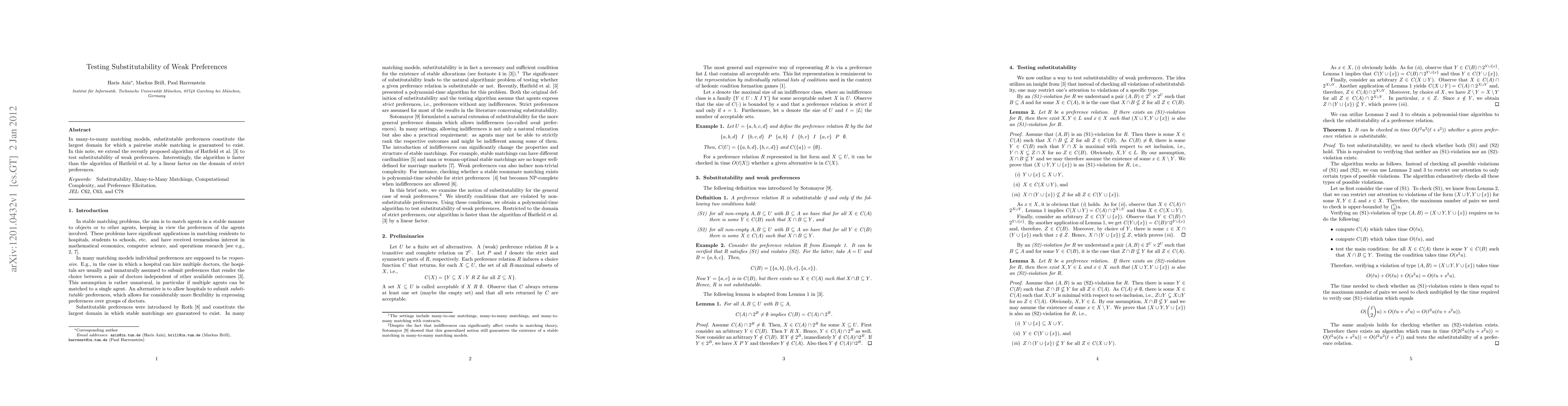 Researchers developed a faster algorithm to test substitutability of weak preferences in many-to-many matching models, improving upon an existing method with a linear speed advantage.