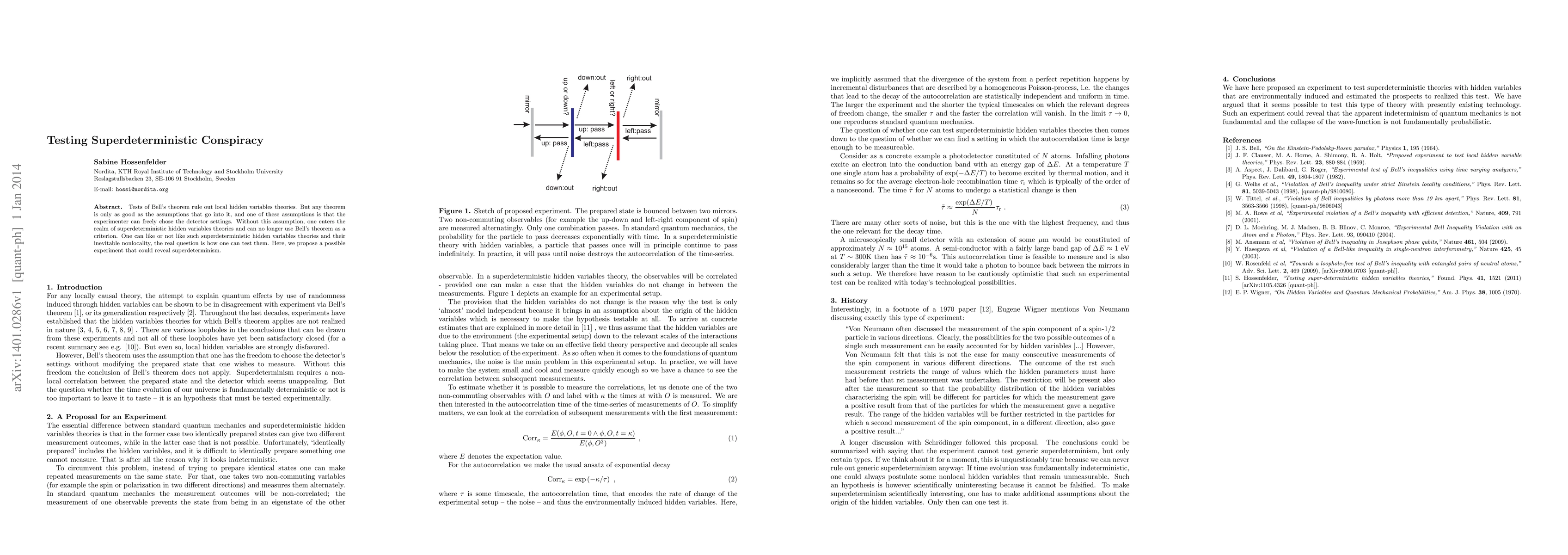 This paper discusses the limitations of Bell's theorem in ruling out superdeterministic hidden variables theories, which assume that experimenter choices are not freely made. The authors propose a new experiment to test for superdeterminism, challenging the conventional understanding of locality and free will in quantum mechanics.