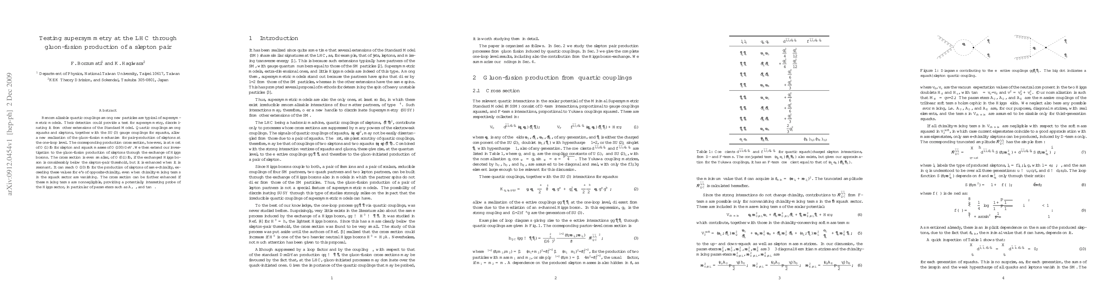 Renormalizable quartic couplings among new particles are typical of supersymmetric models. Their detection could provide a test for supersymmetry, discriminating it from other extensions of the Standard Model. Quartic couplings among squarks and sleptons, together with the SU(3) gauge couplings for squarks, allow a new realization of the gluon-fusion mechanism for pair-production of sleptons at the one-loop level. The corresponding production cross section, however, is at most of ${\cal O}(1) $fb for slepton and squark masses of ${\cal O}(100) $GeV. We then extend our investigation to the gluon-fusion production of sleptons through the exchange of Higgs bosons. The cross section is even smaller, of ${\cal O}(0.1) $fb, if the exchanged Higgs boson is considerably below the slepton-pair threshold, but it is enhanced when it is resonant. It can reach ${\cal O}(10) $fb for the production of sleptons of same-chirality, exceeding these values for $\widetilde{\tau}$'s of opposite-chirality, even when chirality-mixing terms in the squark sector are vanishing. The cross section can be further enhanced if these mixing terms are nonnegligible, providing a potentially interesting probe of the Higgs sector, in particular of parameters such as $A$, $\mu$, and $\tan\beta$.