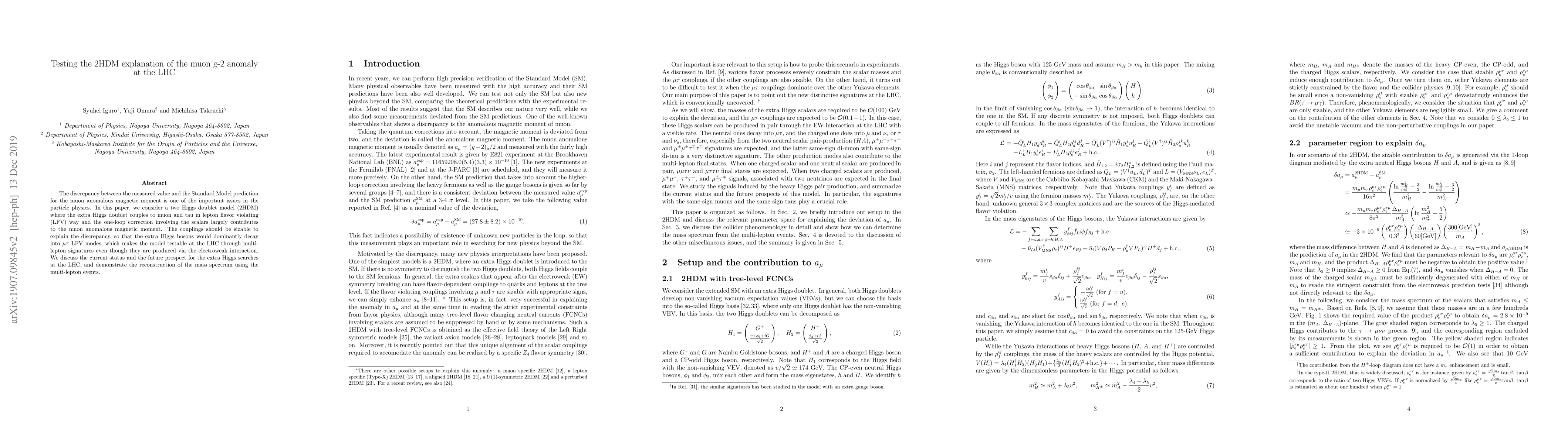 This paper explores how a two Higgs doublet model (2HDM) can explain the muon g-2 anomaly through lepton flavor violating interactions, predicting sizable couplings that allow for testable multi-lepton signatures at the LHC. The study discusses the current and future prospects for detecting extra Higgs bosons via these signatures.