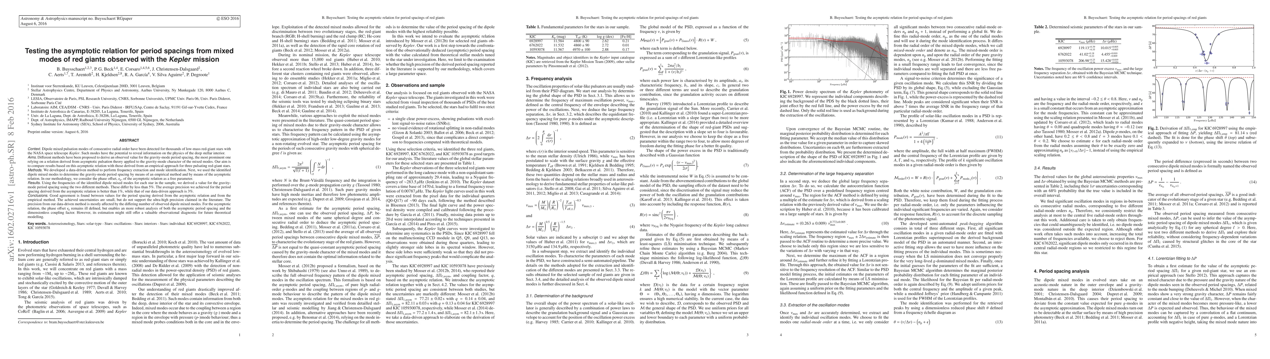 Dipole mixed pulsation modes of consecutive radial order have been detected for thousands of low-mass red-giant stars with the NASA space telescope Kepler. Such modes have the potential to reveal information on the physics of the deep stellar interior. Different methods have been proposed to derive an observed value for the gravity-mode period spacing, the most prominent one relying on a relation derived from asymptotic pulsation theory applied to the gravity-mode character of the mixed modes. Our aim is to compare results based on this asymptotic relation with those derived from an empirical approach for three pulsating red-giant stars. We developed a data-driven method to perform frequency extraction and mode identification. Next, we used the identified dipole mixed modes to determine the gravity-mode period spacing by means of an empirical method and by means of the asymptotic relation. In our methodology, we consider the phase offset, $\epsilon_{\mathrm{g}}$, of the asymptotic relation as a free parameter. Using the frequencies of the identified dipole mixed modes for each star in the sample, we derived a value for the gravity-mode period spacing using the two different methods. These differ by less than 5%. The average precision we achieved for the period spacing derived from the asymptotic relation is better than 1%, while that of our data-driven approach is 3%. Good agreement is found between values for the period spacing derived from the asymptotic relation and from the empirical method. Full abstract in PDF file.
