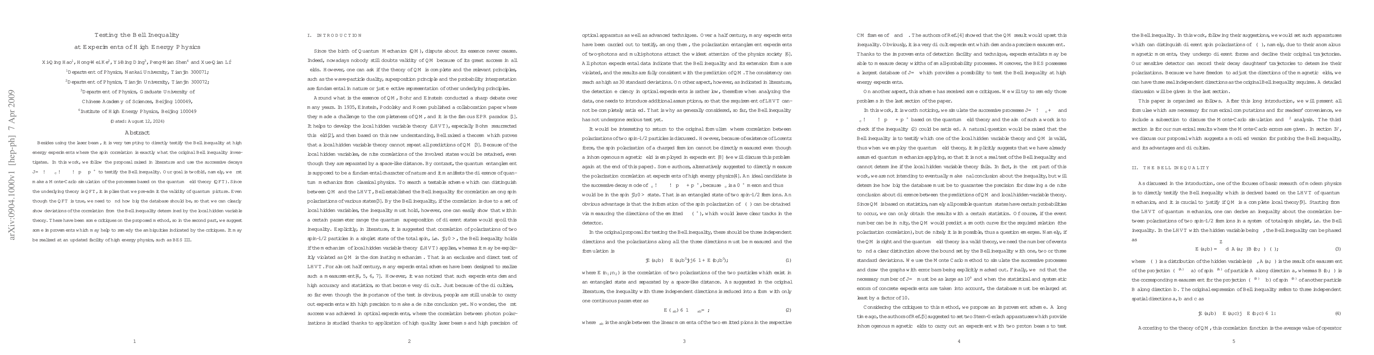 Besides using the laser beam, it is very tempting to directly testify the Bell inequality at high energy experiments where the spin correlation is exactly what the original Bell inequality investigates. In this work, we follow the proposal raised in literature and use the successive decays $J/\psi\to\gamma\eta_c\to \Lambda\bar\Lambda\to p\pi^-\bar p\pi^+$ to testify the Bell inequality. Our goal is twofold, namely, we first make a Monte-Carlo simulation of the processes based on the quantum field theory (QFT). Since the underlying theory is QFT, it implies that we pre-admit the validity of quantum picture. Even though the QFT is true, we need to find how big the database should be, so that we can clearly show deviations of the correlation from the Bell inequality determined by the local hidden variable theory. There have been some critiques on the proposed method, so in the second part, we suggest some improvements which may help to remedy the ambiguities indicated by the critiques. It may be realized at an updated facility of high energy physics, such as BES III.