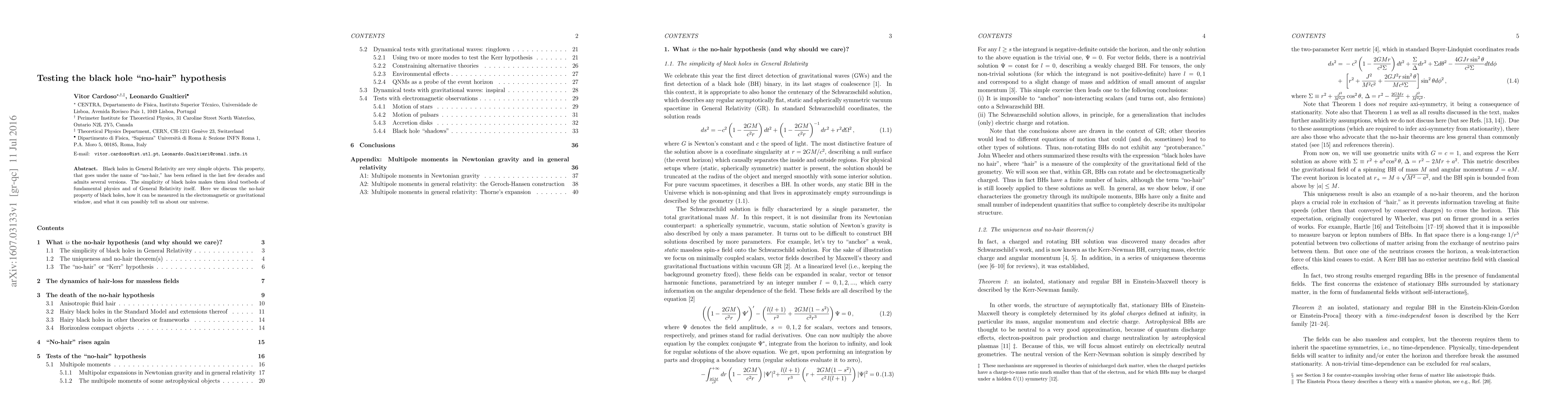 Black holes in General Relativity are very simple objects. This property, that goes under the name of "no-hair," has been refined in the last few decades and admits several versions. The simplicity of black holes makes them ideal testbeds of fundamental physics and of General Relativity itself. Here we discuss the no-hair property of black holes, how it can be measured in the electromagnetic or gravitational window, and what it can possibly tell us about our universe.