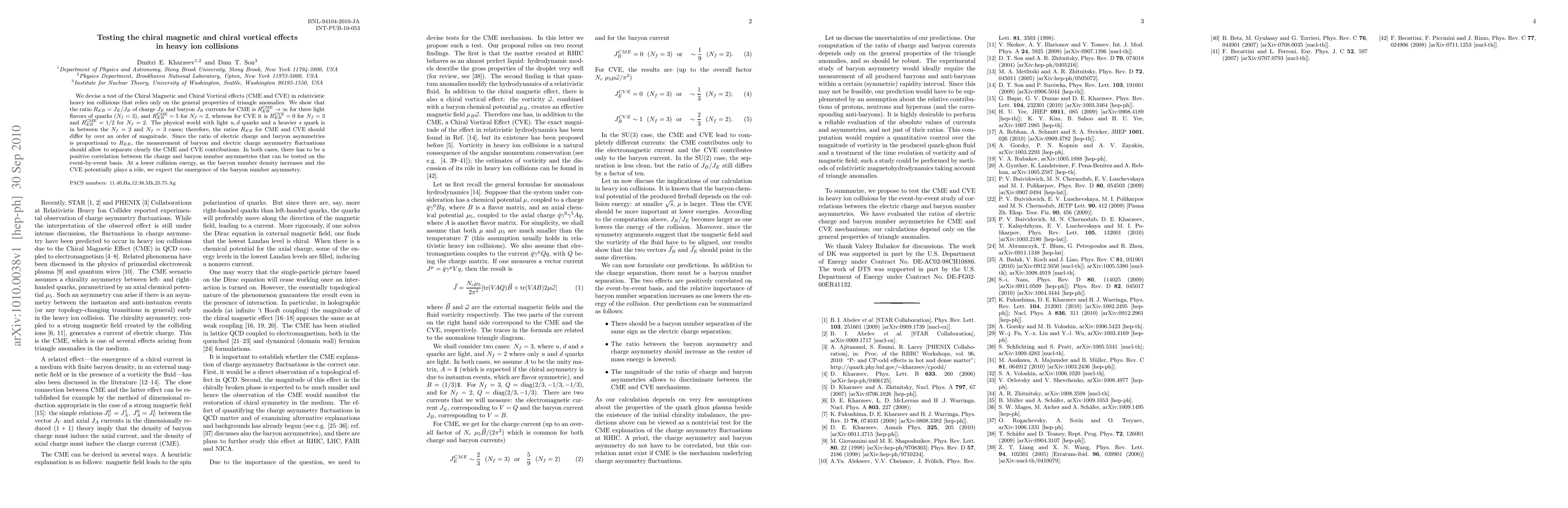 We devise a test of the Chiral Magnetic and Chiral Vortical effects (CME and CVE) in relativistic heavy ion collisions that relies only on the general properties of triangle anomalies. We show that the ratio $R_{EB}=J_E/J_B$ of charge $J_E$ and baryon $J_B$ currents for CME is $R^{\rm CME}_{EB} \to \infty$ for three light flavors of quarks ($N_f =3$), and $R^{\rm CME}_{EB} = 5$ for $N_f =2$, whereas for CVE it is $R^{\rm CVE}_{EB} =0$ for $N_f =3$ and $R^{\rm CME}_{EB} = 1/2$ for $N_f =2$. The physical world with light $u,d$ quarks and a heavier $s$ quark is in between the $N_f =2$ and $N_f =3$ cases; therefore, the ratios $R_{EB}$ for CME and CVE should differ by over an order of magnitude. Since the ratio of electric charge and baryon asymmetries is proportional to $R_{EB}$, the measurement of baryon and electric charge asymmetry fluctuations should allow to separate clearly the CME and CVE contributions. In both cases, there has to be a positive correlation between the charge and baryon number asymmetries that can be tested on the event-by-event basis. At a lower collision energy, as the baryon number density increases and the CVE potentially plays a role, we expect the emergence of the baryon number asymmetry.
