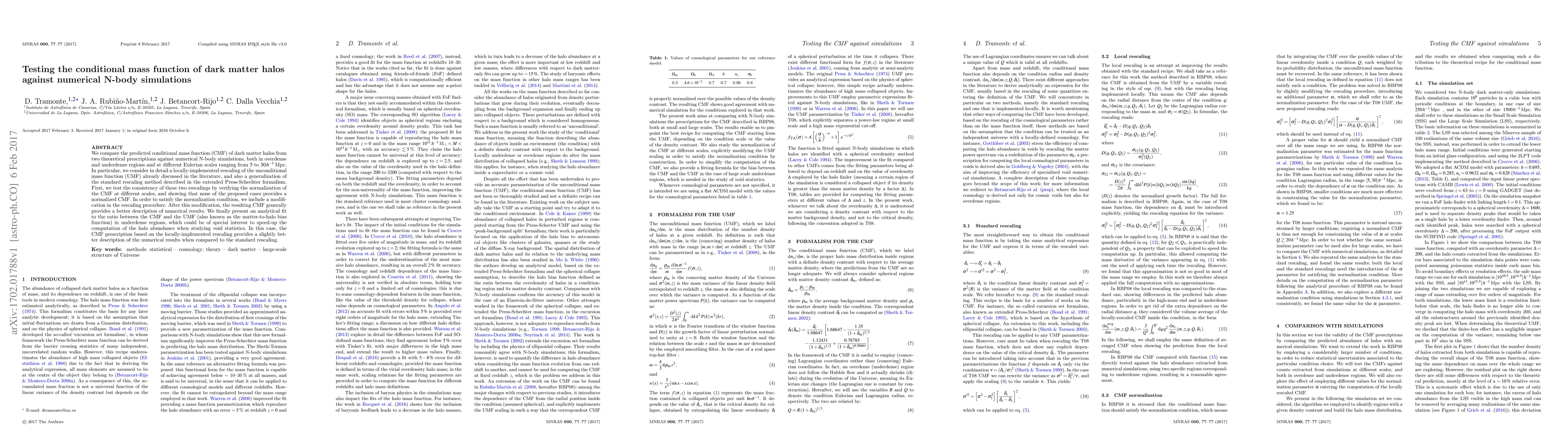 This paper compares the conditional mass function (CMF) of dark matter halos from two theoretical methods against N-body simulation results. It finds that neither method initially satisfies normalization conditions, but after modification, the CMFs better match the simulations. An analytical fit for the matter-to-halo bias function in underdense regions is also presented, with the locally-rescaled CMF showing slightly better performance.