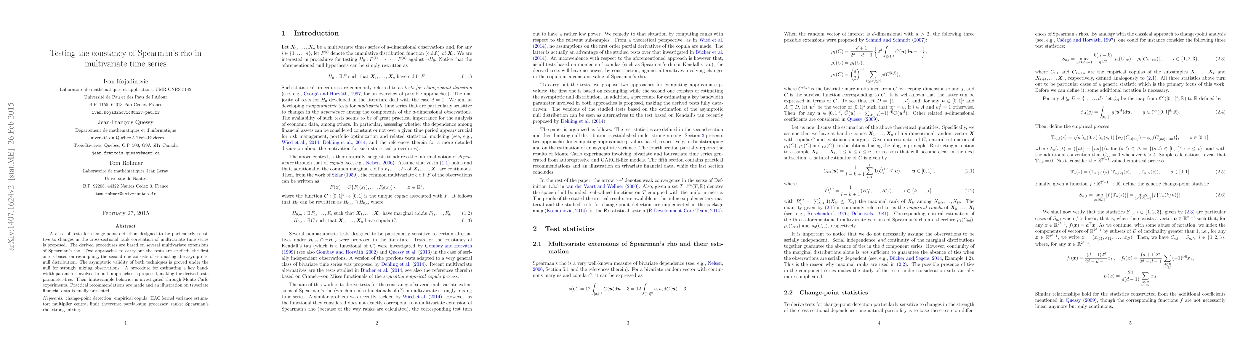 Researchers develop new tests for detecting changes in multivariate time series, focusing on Spearman's rho correlation coefficient, to identify shifts in cross-sectional rank correlations.