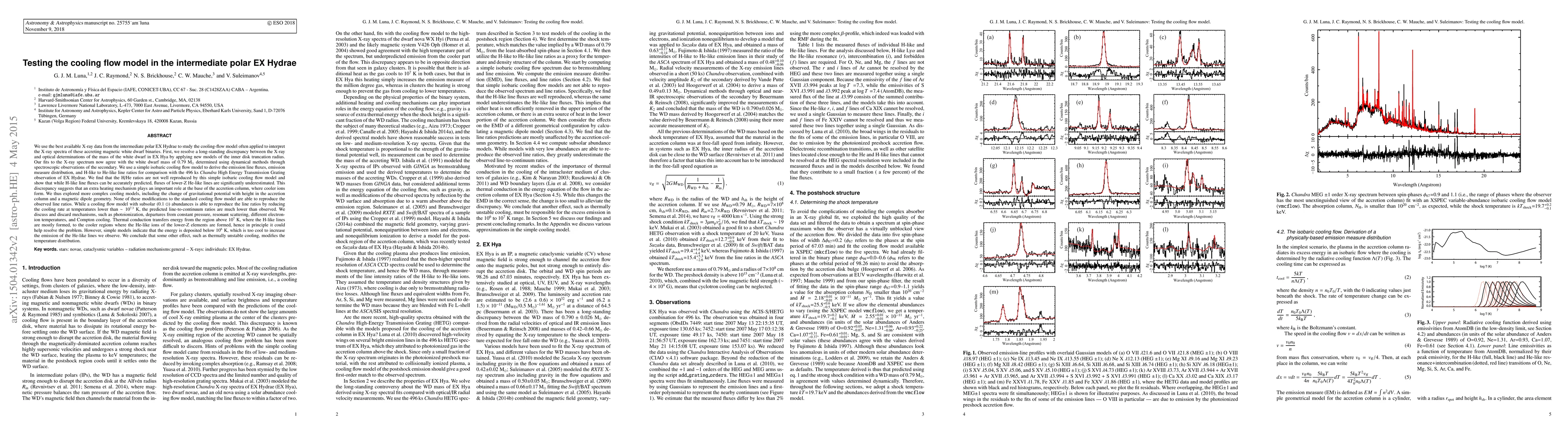 This study investigates the cooling flow model in the intermediate polar EX Hydrae using X-ray data, resolving a discrepancy in white dwarf mass determinations. Despite fitting the X-ray spectrum, the model fails to reproduce observed H/He line ratios, suggesting additional heating mechanisms are needed. Attempts to modify the cooling flow model, including changes in gravitational potential and magnetic dipole geometry, also fall short.