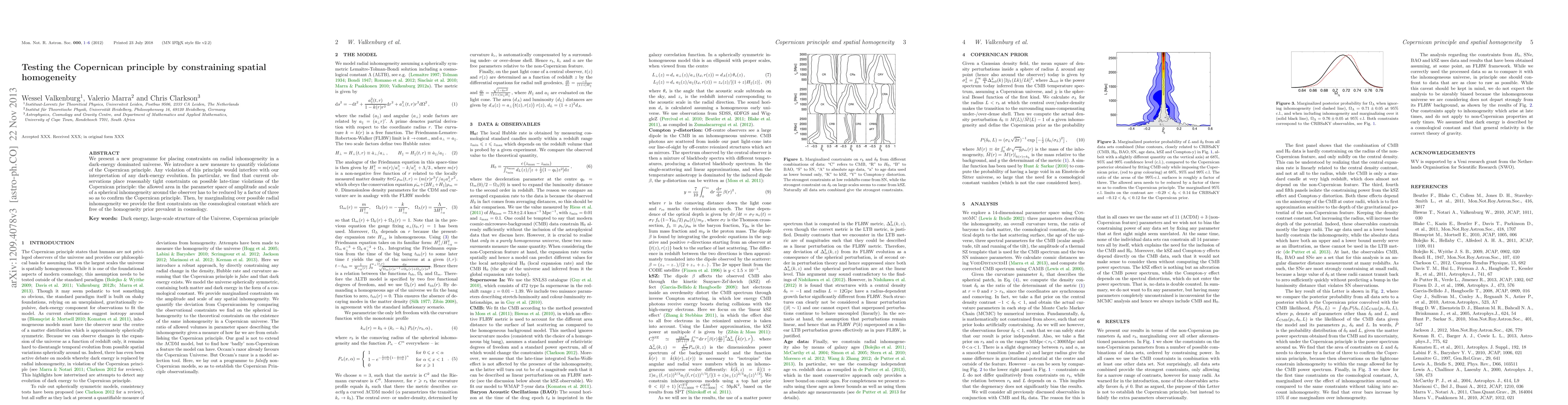 We present a new programme for placing constraints on radial inhomogeneity in a dark-energy dominated universe. We introduce a new measure to quantify violations of the Copernican principle. Any violation of this principle would interfere with our interpretation of any dark-energy evolution. In particular, we find that current observations place reasonably tight constraints on possible late-time violations of the Copernican principle: the allowed area in the parameter space of amplitude and scale of a spherical inhomogeneity around the observer has to be reduced by a factor of three so as to confirm the Copernican principle. Then, by marginalizing over possible radial inhomogeneity we provide the first constraints on the cosmological constant which are free of the homogeneity prior prevalent in cosmology.